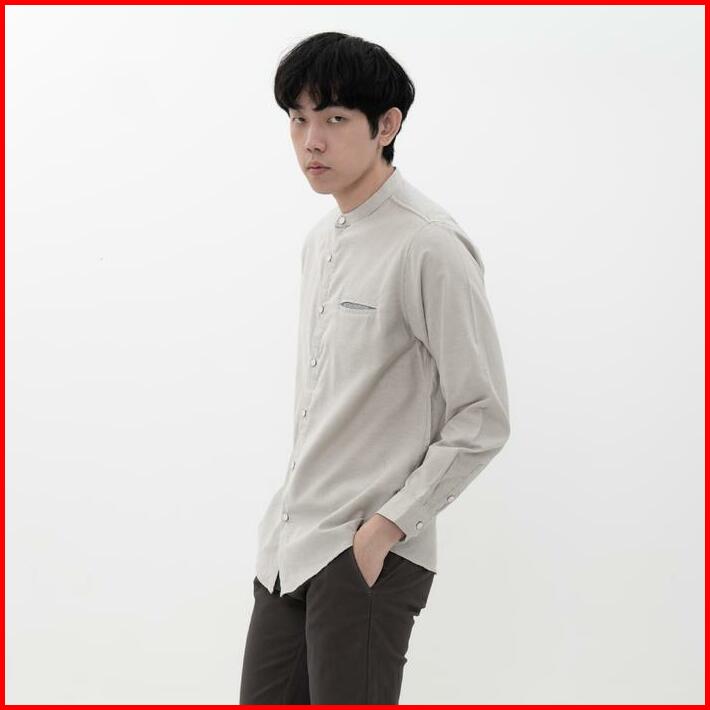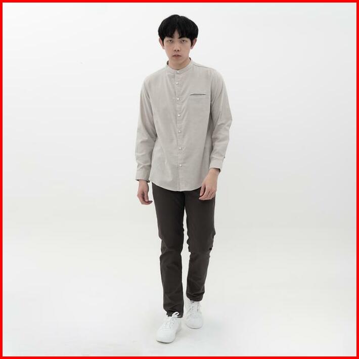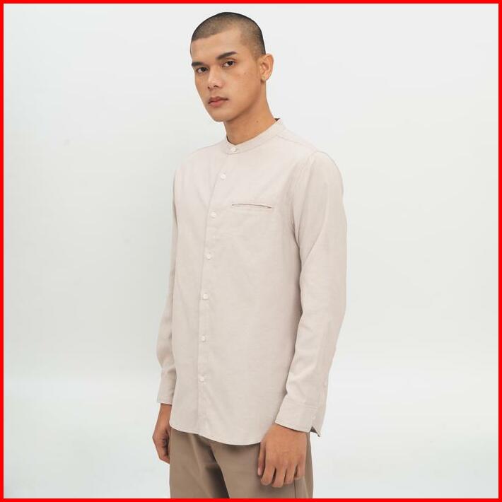 M231 Kemeja Pria Koko Shanghai Polos Oxford Panjang Beige 1552e