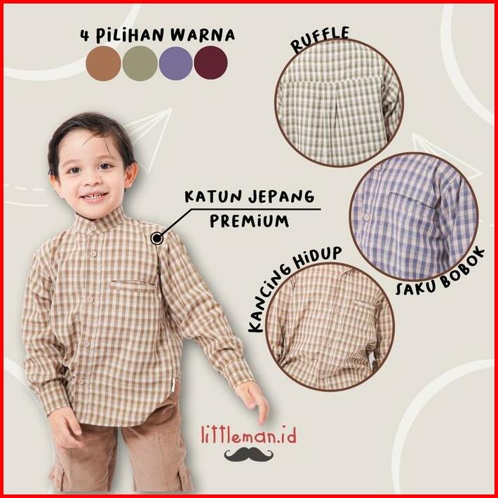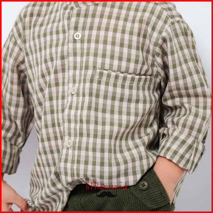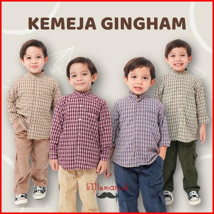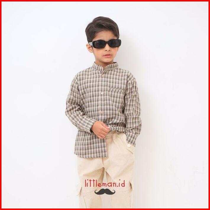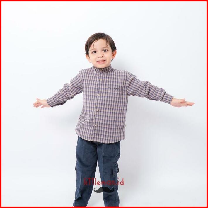 Kemeja Anak Lengan Panjang Gingham Series Motif Kotak Kerah Koko Shanghai Littleman.id