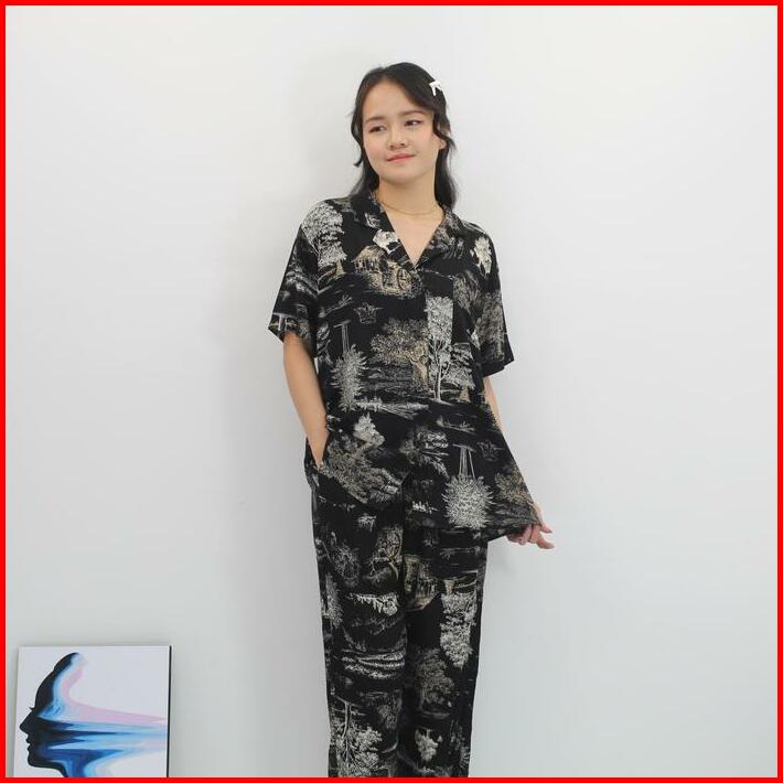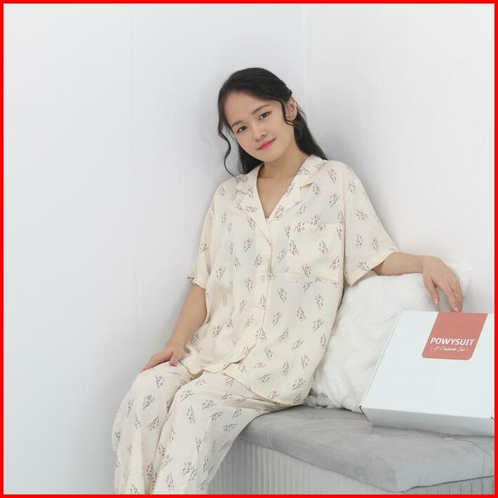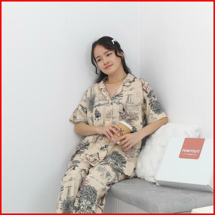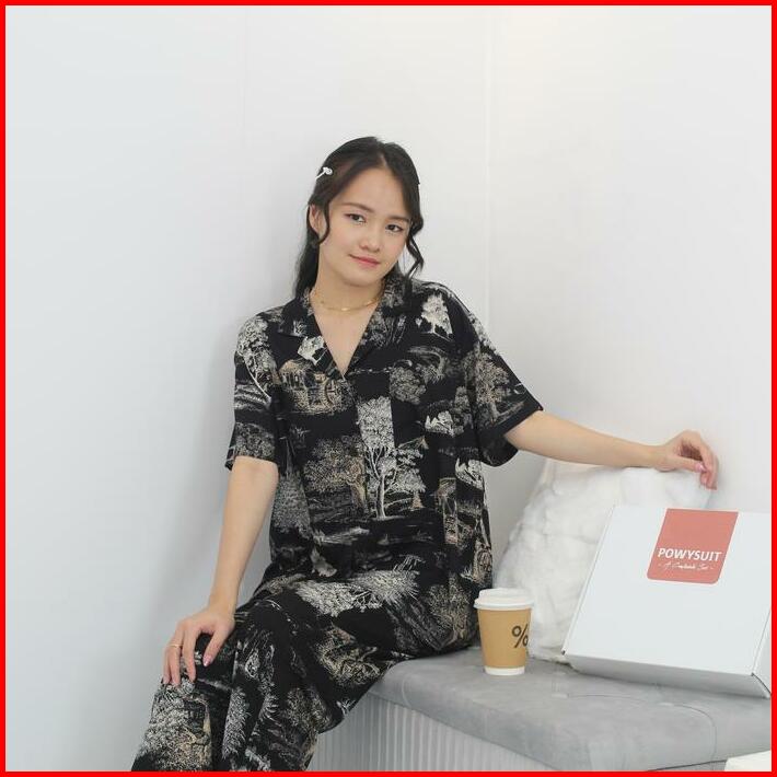 Powysuit Piyama Rayon Wanita Motif Lengan Pendek Dan Setelan Celana Panjang One Set Baju Tidur Rayon Part 1