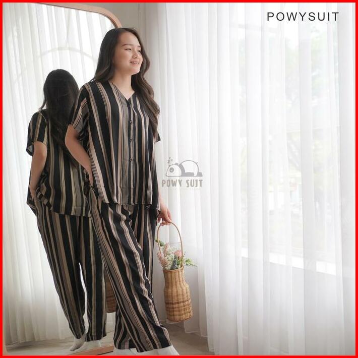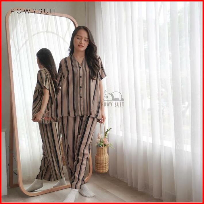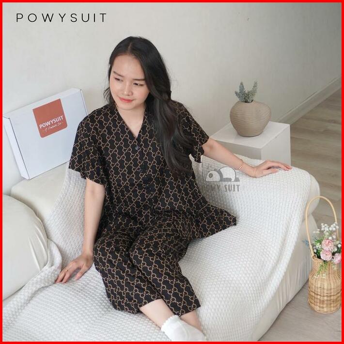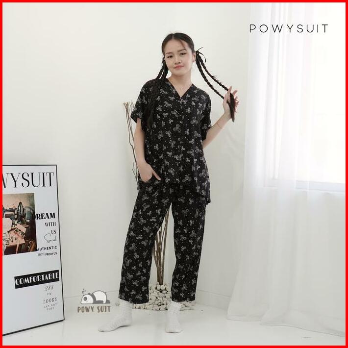 Powysuit Piyama Rayon V Neck Wanita Motif Lengan Pendek Dan Setelan Celana Panjang Busui Baju Tidur Rayon