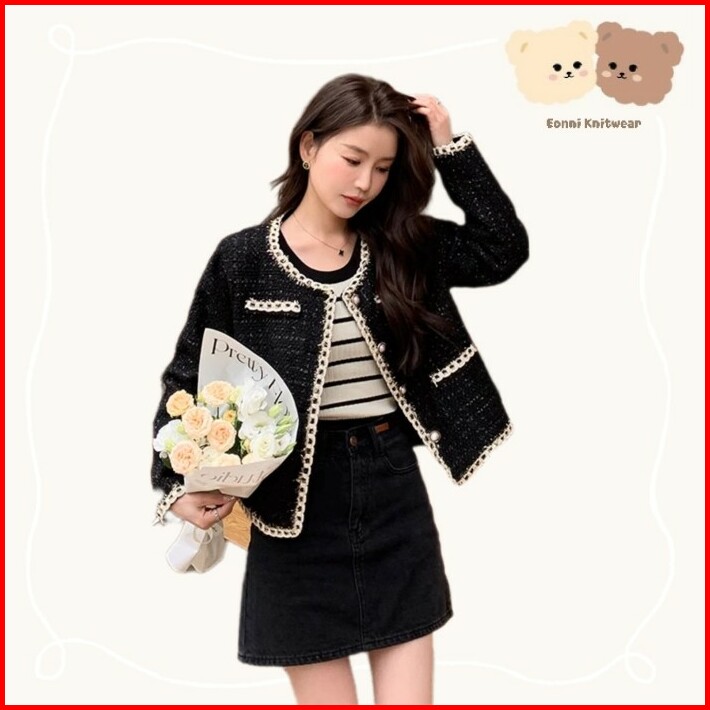 Cardigan Wanita Korea Style Import Mg Tweed Black