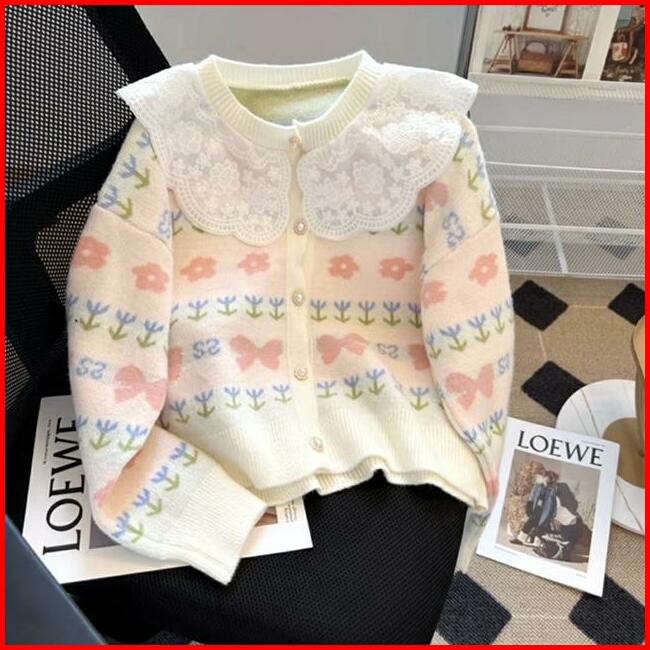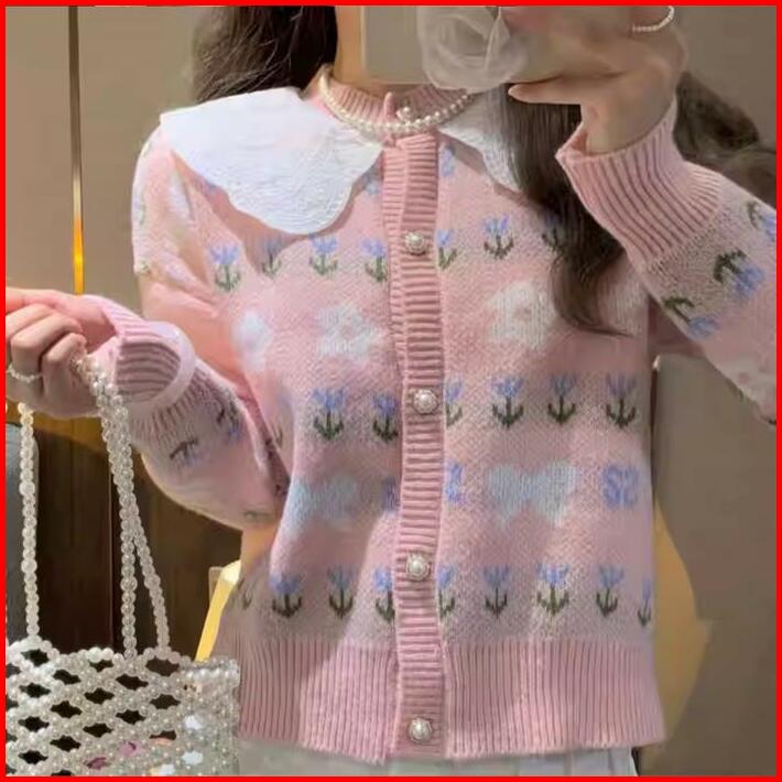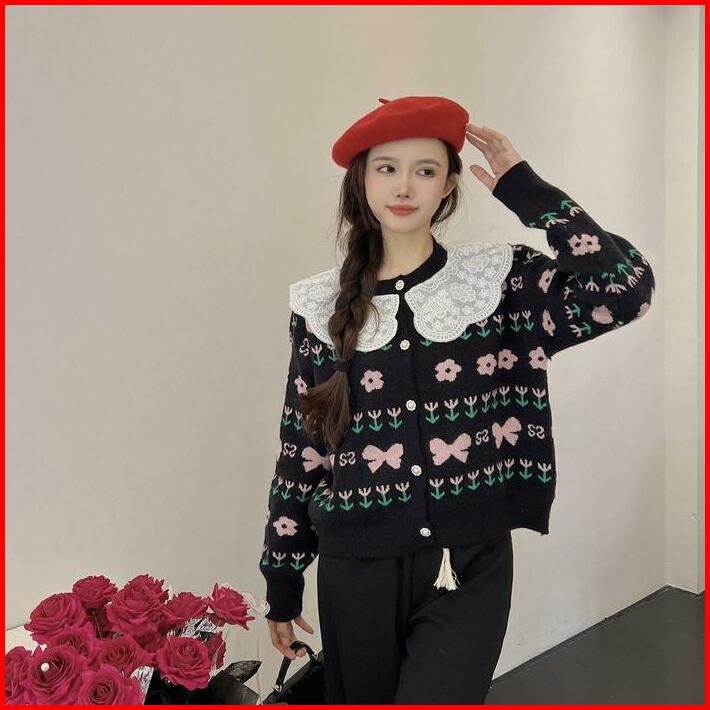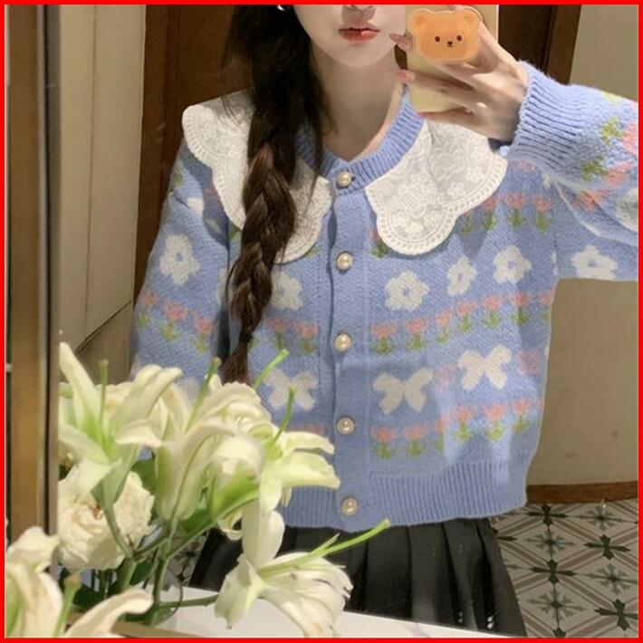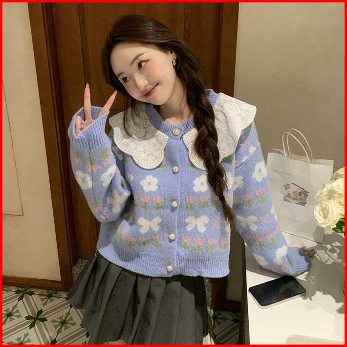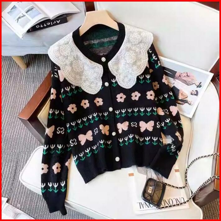 Cardigan Harumi Lace Collar Knit Import