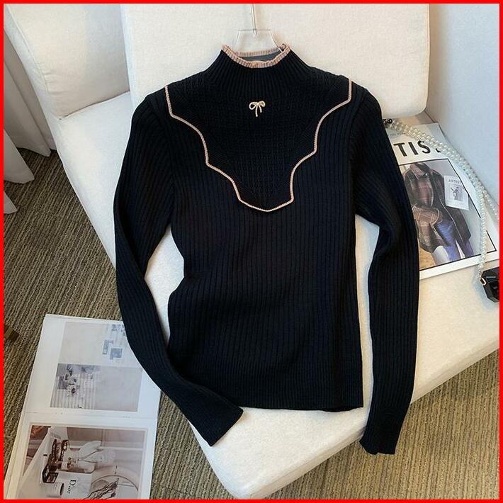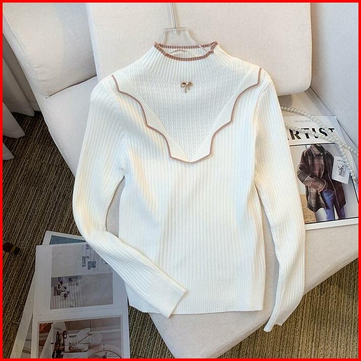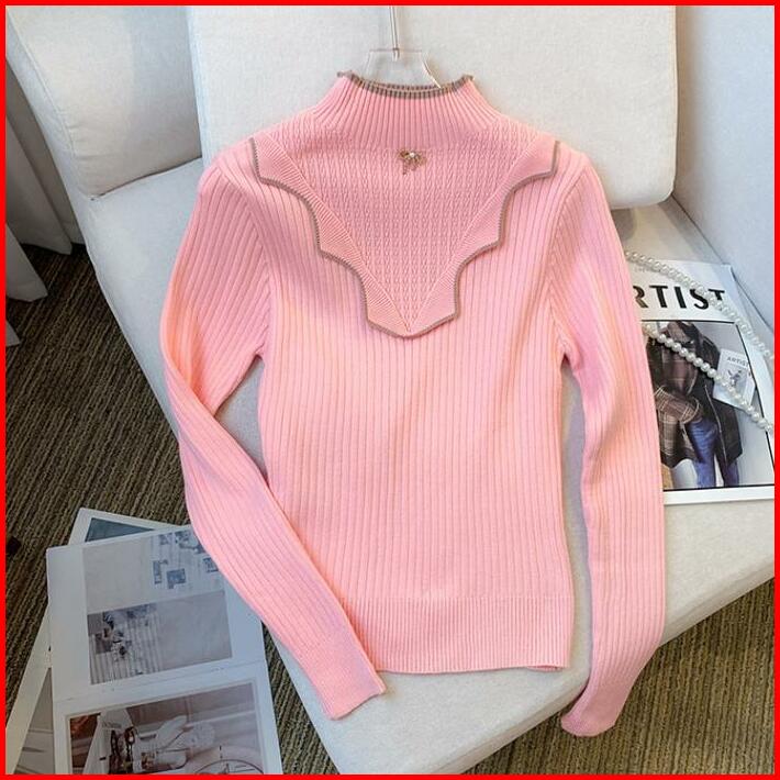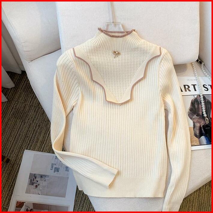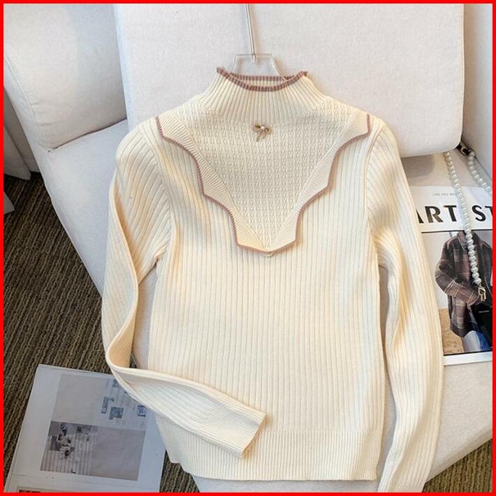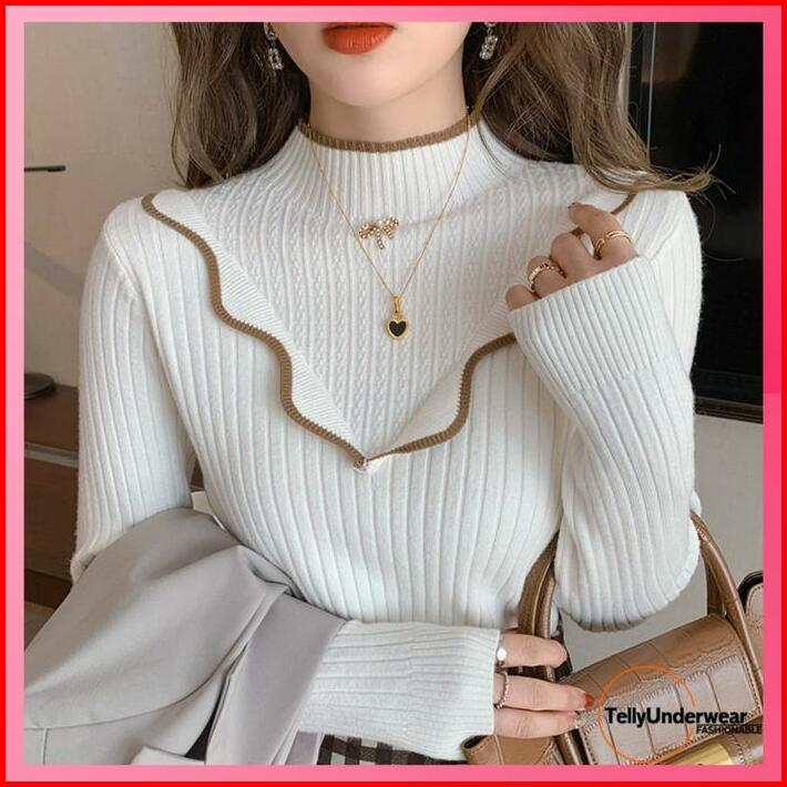 Telly 106 Atasan Rajut Turtleneck Wanita Ruffle Knit Premium Lengan Panjang Knitwear Cardigan Top