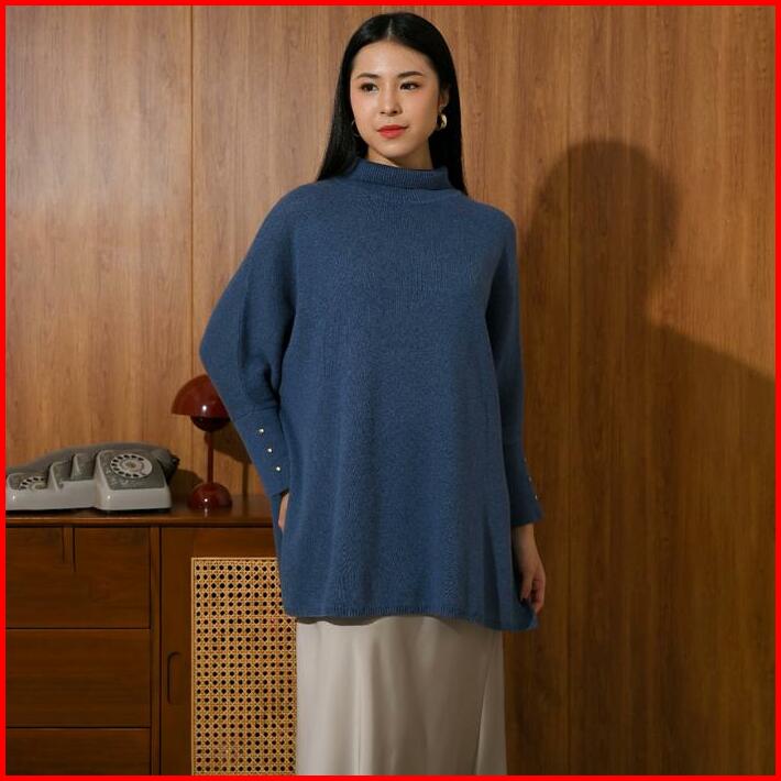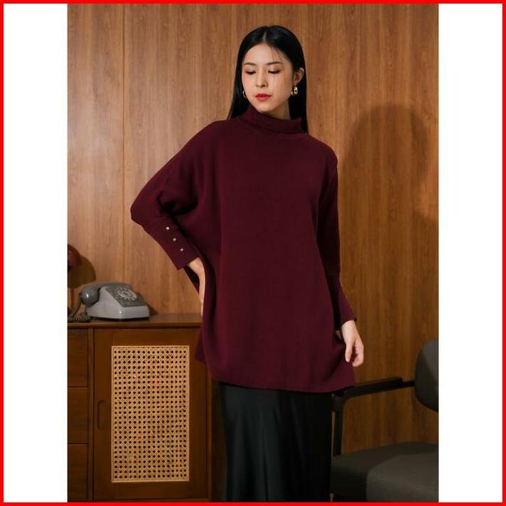 Cassia Knit Batwing Oversize Batwing Sweater Atasan Knit Wanita Batwing Top Knitwear Turtleneck Batwing Turtleneck Top T