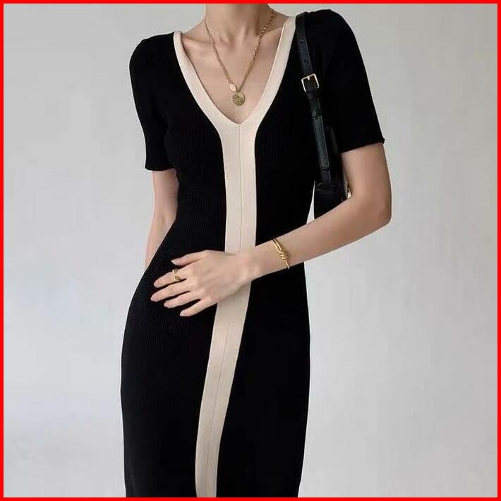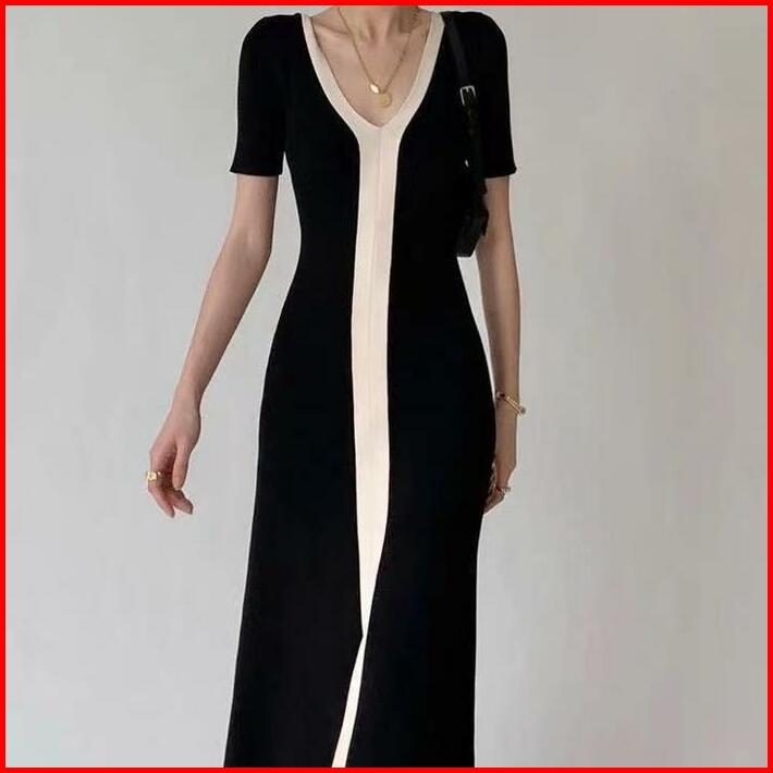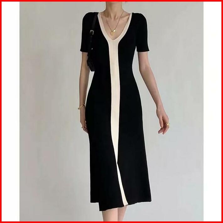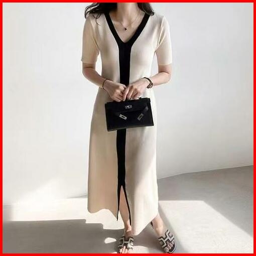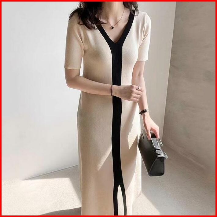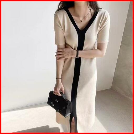 Premiumslim Short Sleeves A-line Knit Long Dress 7209