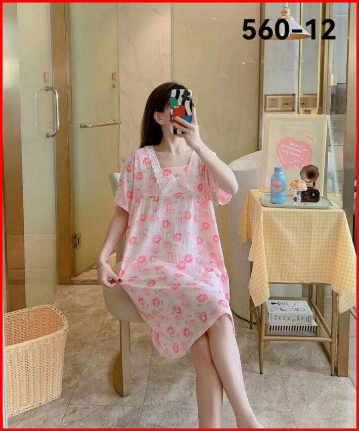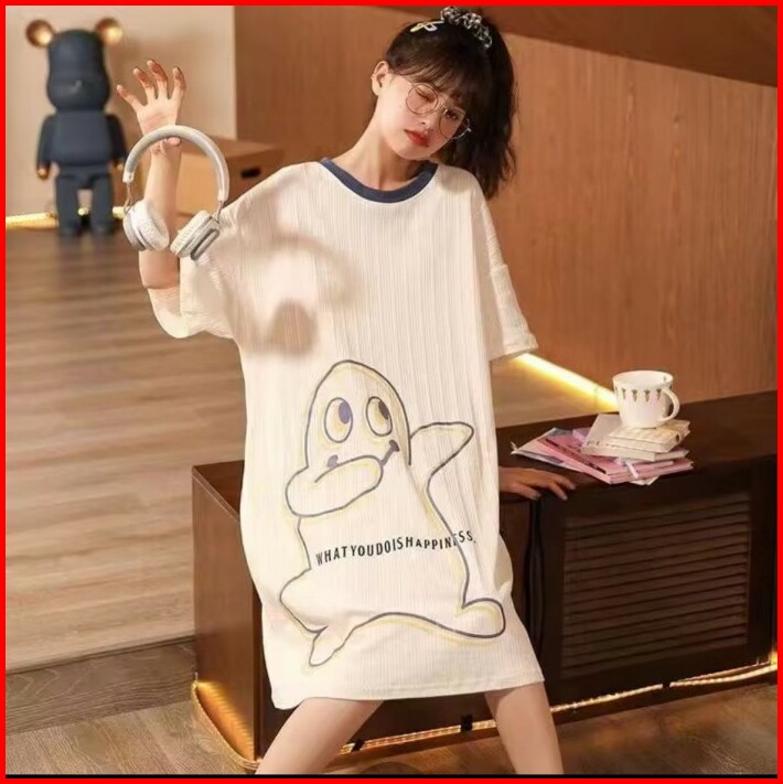 Daster Kancing Knit Wanita Dress Tidur Lucu