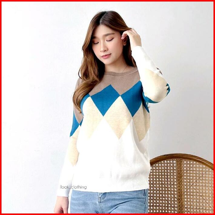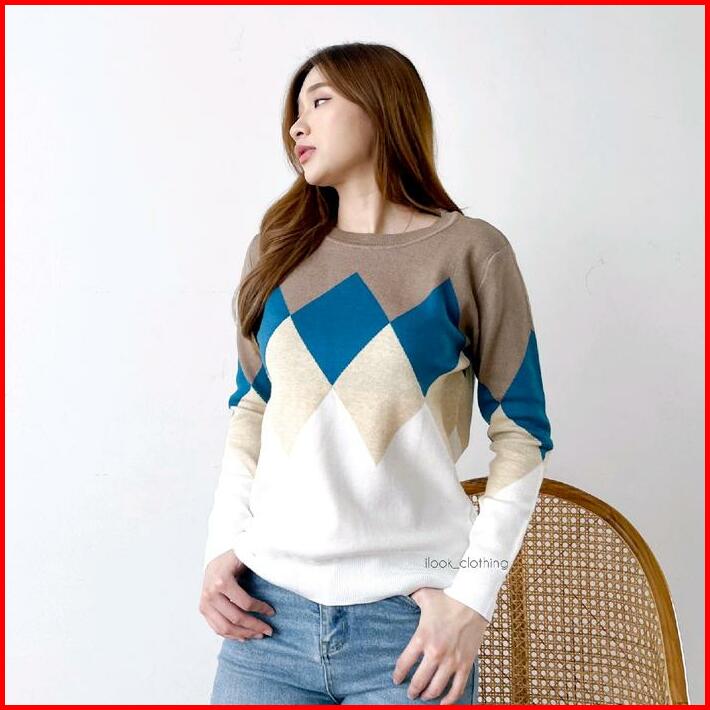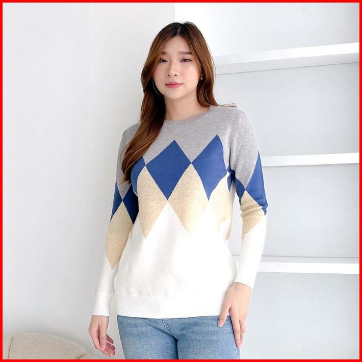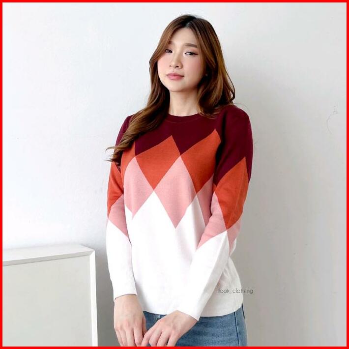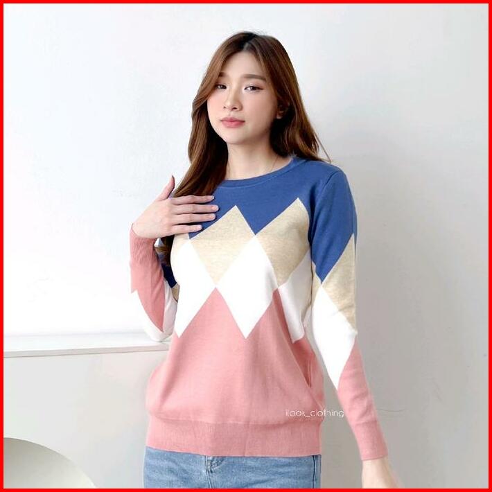 Rouline Knit Tops Atasan Rajut Katun Tebal Wanita Halus Adem Sweater Cewe Tangan Panjang
