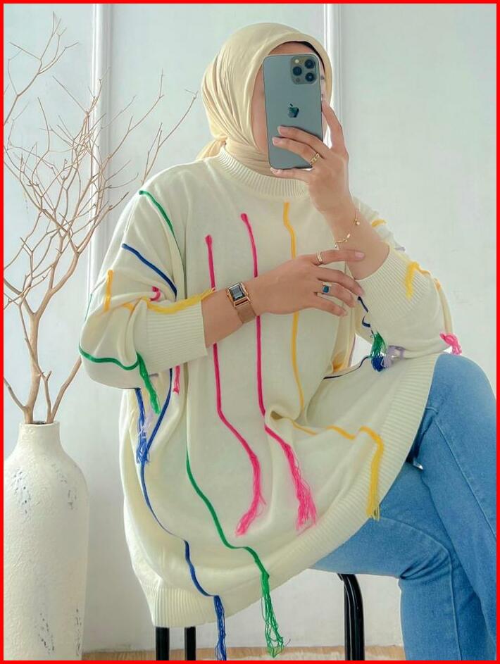 Pakaian Atasan Wanita Blouse List Woll Bahan Knit Terkini