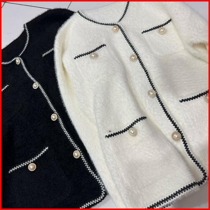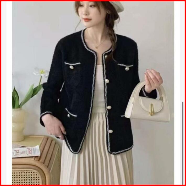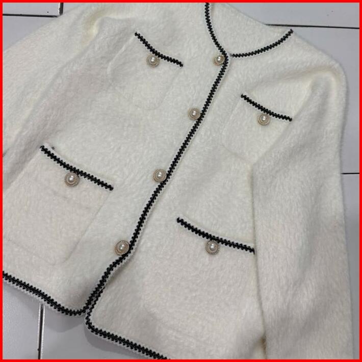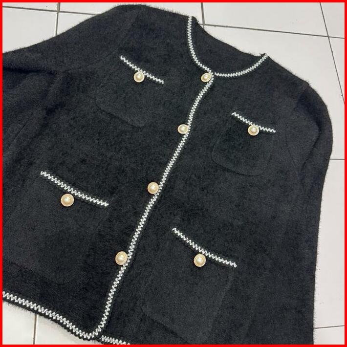 Cardigan Blazer Tweed Bulu Halus 387 Hitam Putih Outer Knitwear