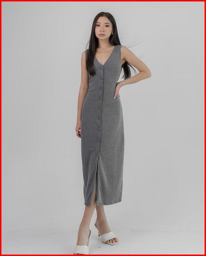 Evertops Bea Dress Gaun Casual Midi Knit Motif
