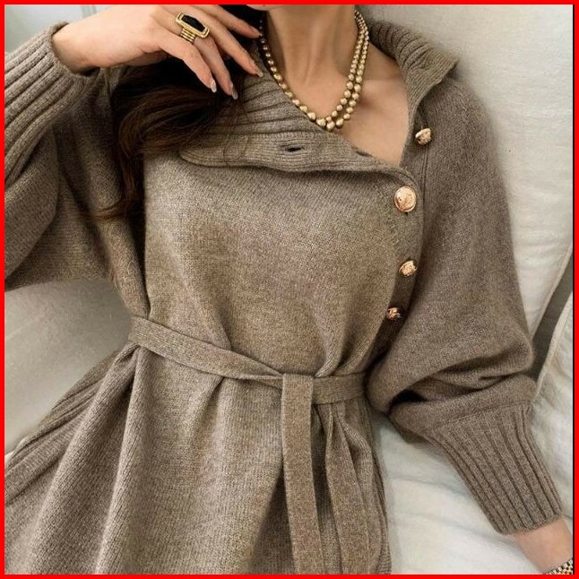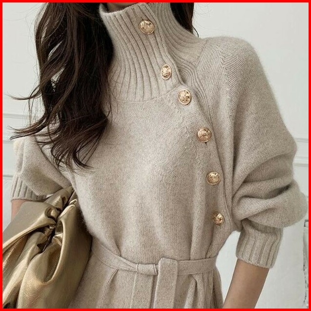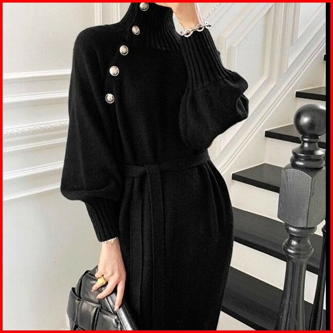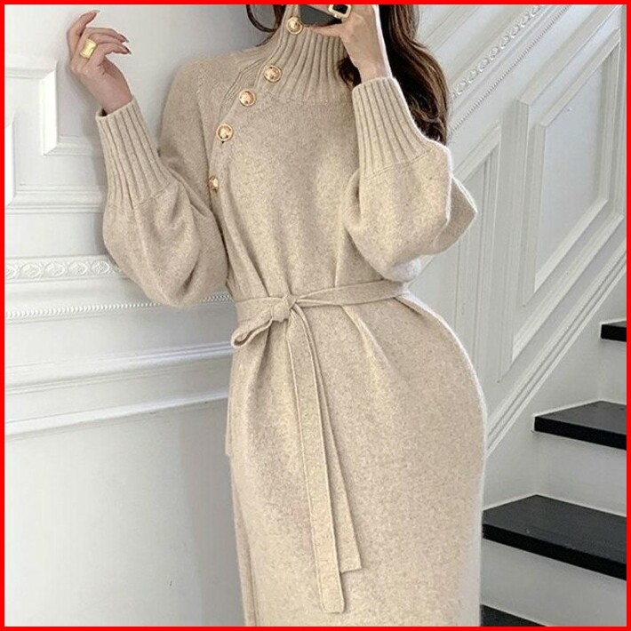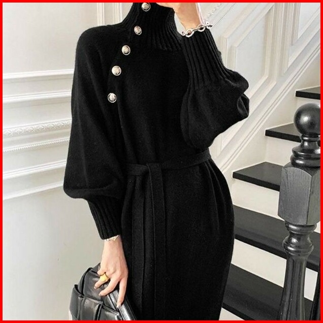Hae Ra Knit Dress Woman Winter Autumn Import Baju Musim Dingin