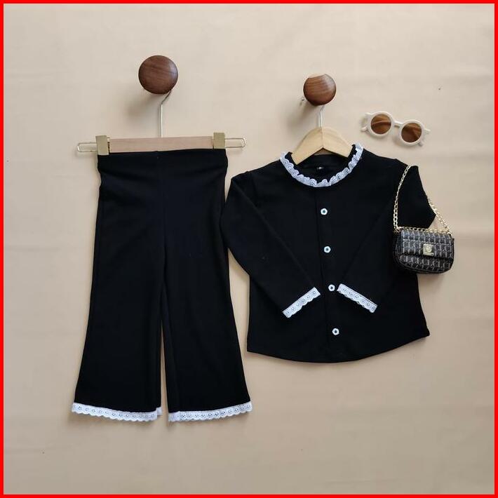 Paket Bundling One Set Jennie Top Flare With Lace Untuk Anak Perempuan Usia 1-10 Tahun Bahan Knit Premium Fashion Baju C