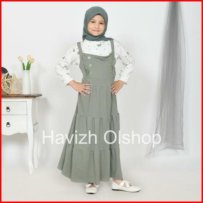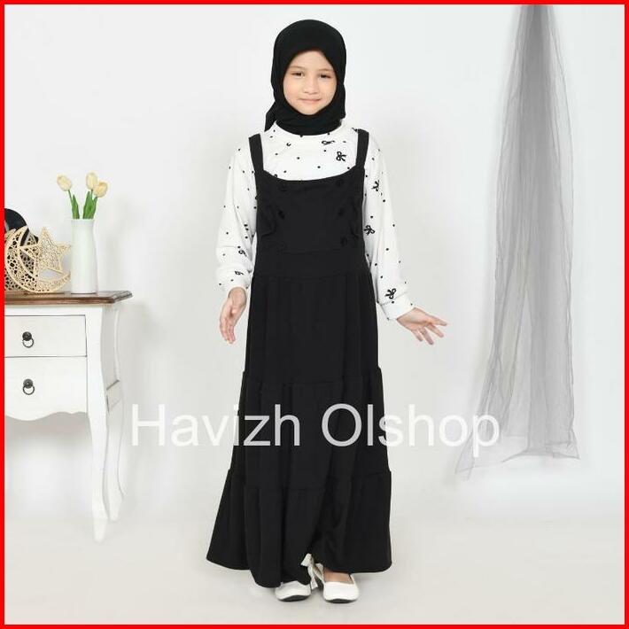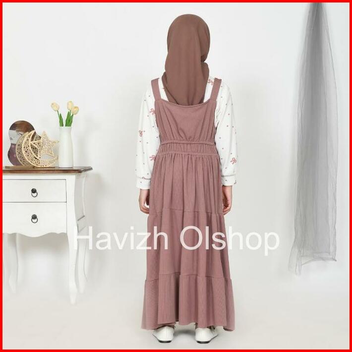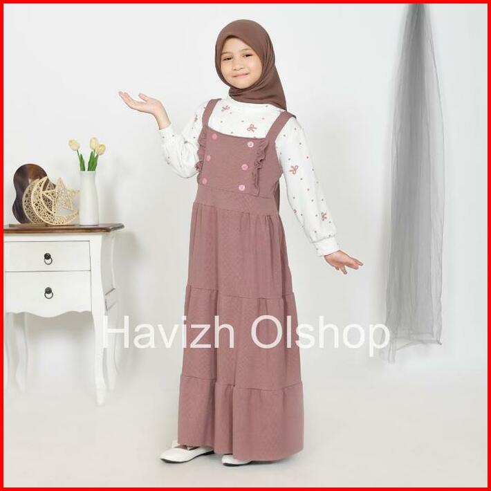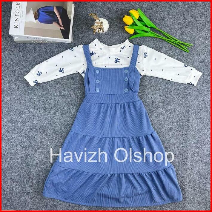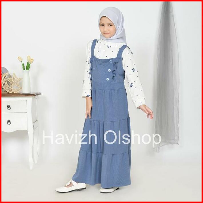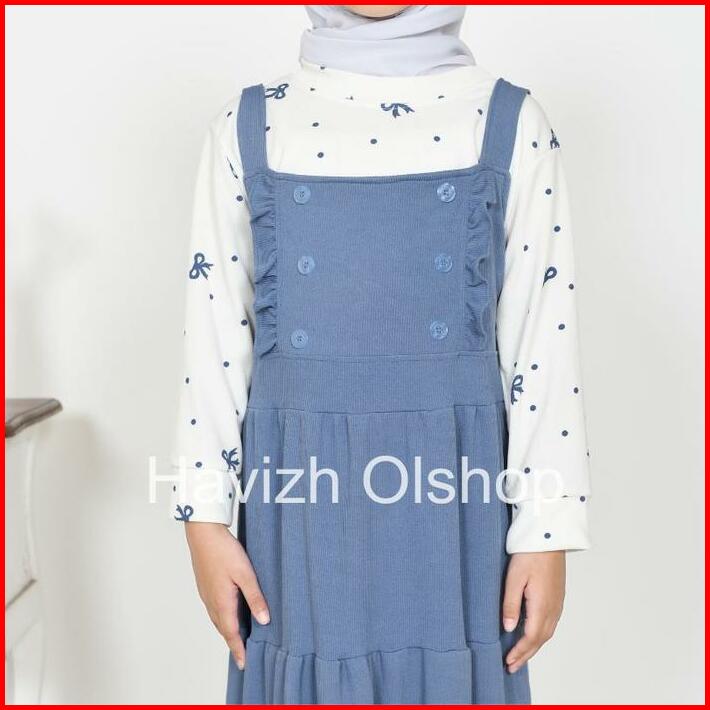 Gamis Anak Perempuan Model Overall Knit Motif Pita 2 In 1 3-12 Tahun Gamis Muslim Anak Perempuan