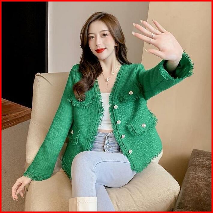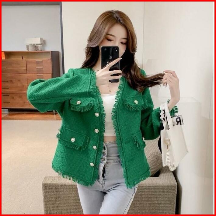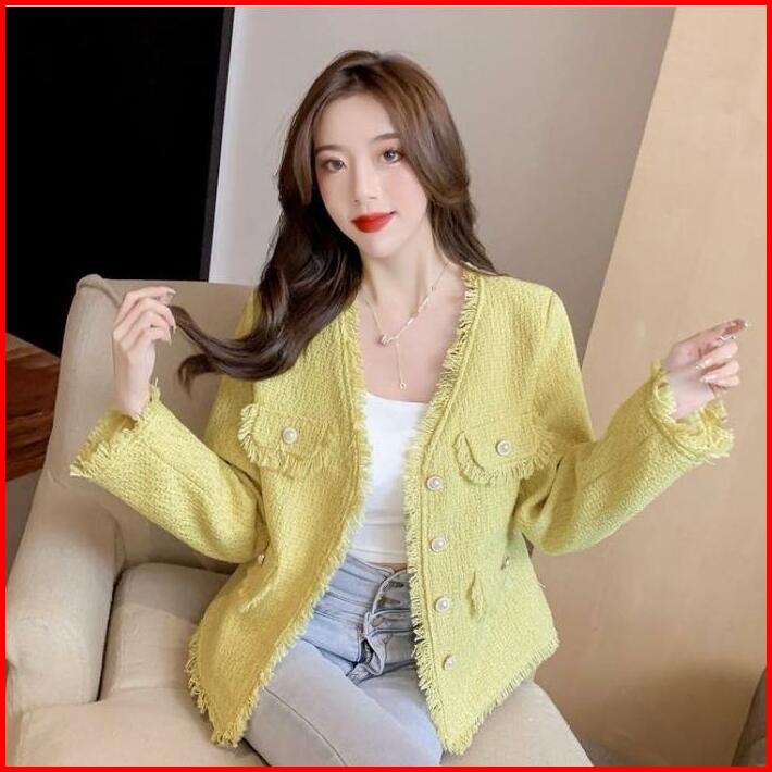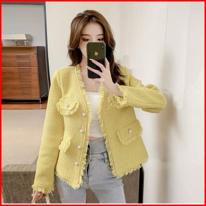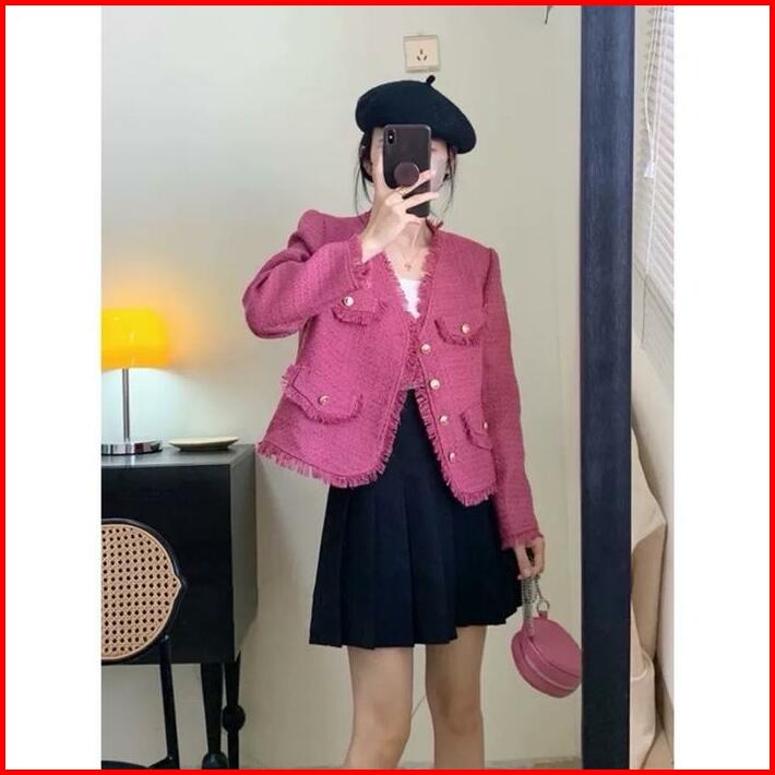 Theone Korean Style Blazer Tweed Raw V-neck With Fake Pocket S M L