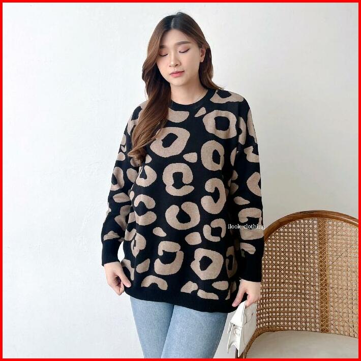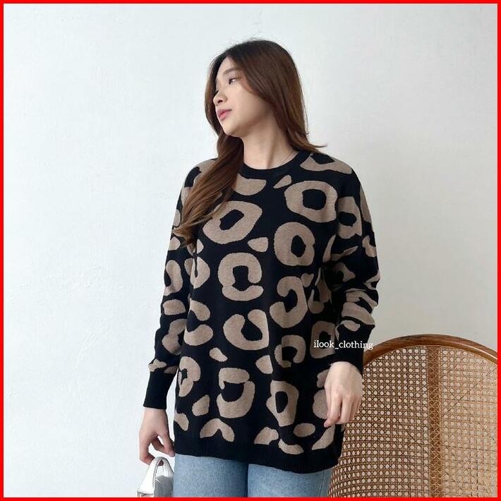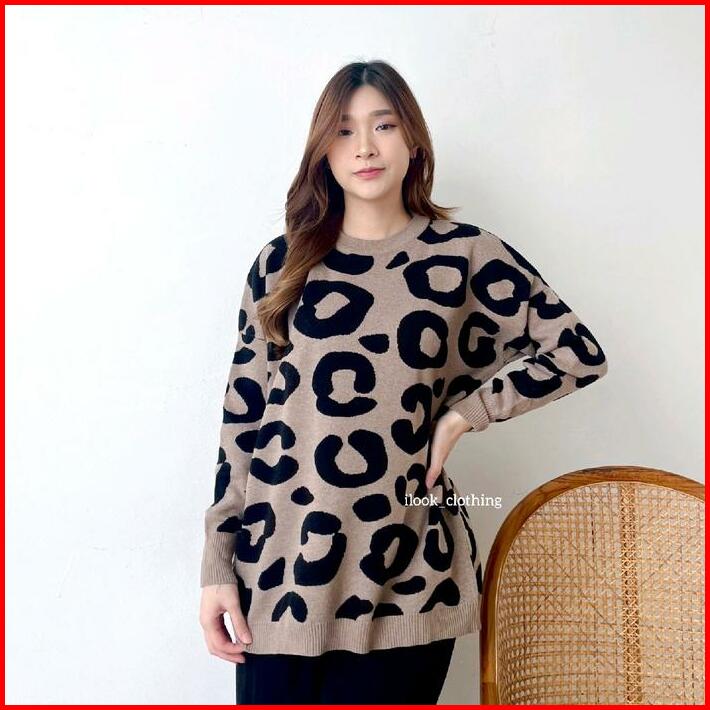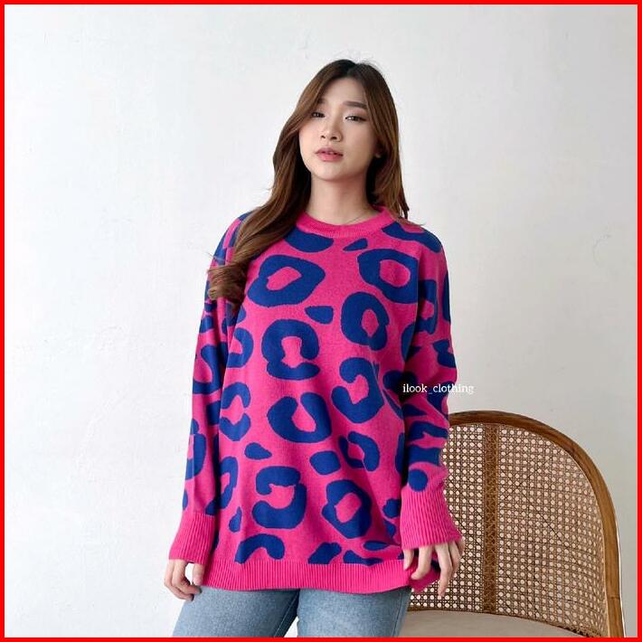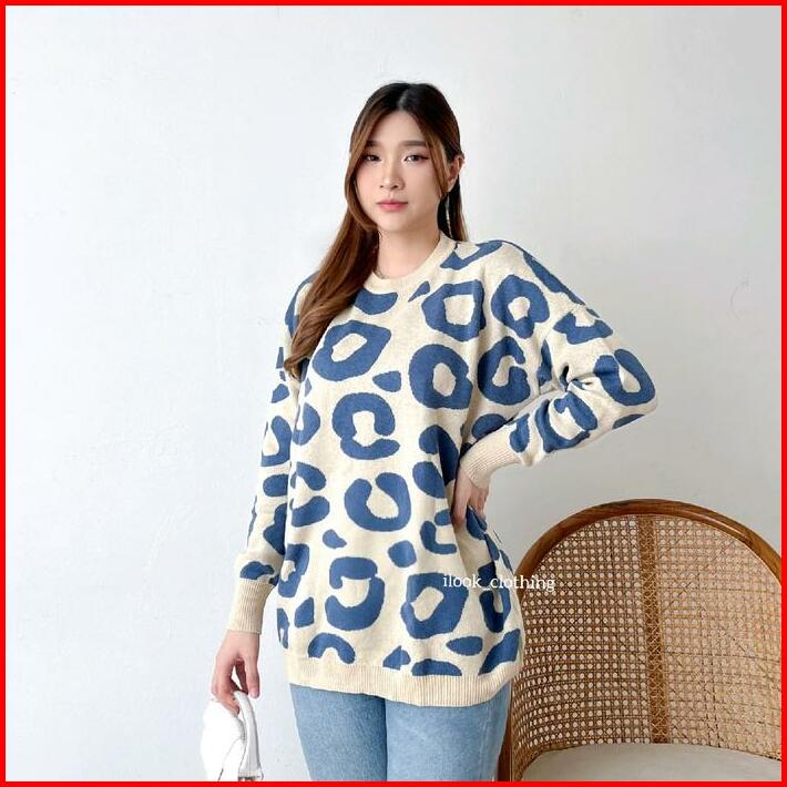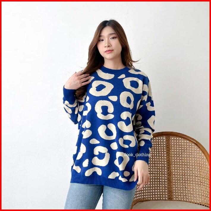 Fio Oversize Knit Tops Atasan Rajut Katun Halus Adem Wanita Tangan Panjang Sweater Cewe Hijab Friendly Bigsize Motif Kni