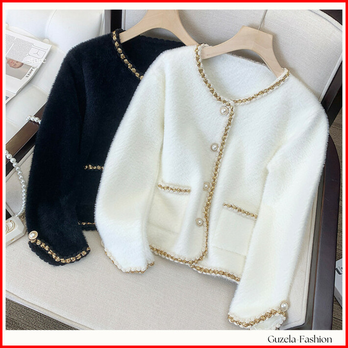 Blazer Tweed Korea Mewah Bludru Simple Polos Garis Classy Elegant