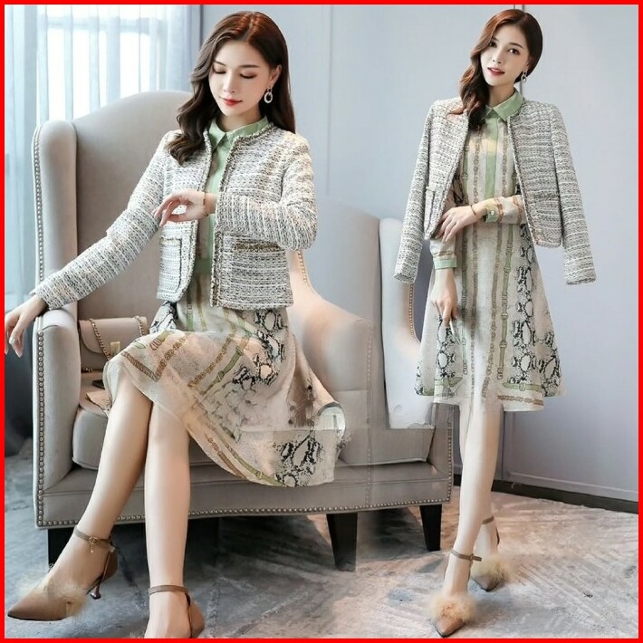 Set Dress Blazer Tweed Motif Geometric Sister Photoshoot Europe Paris Gaun Pesta Wedding Party Event Club Prewed Sangjit