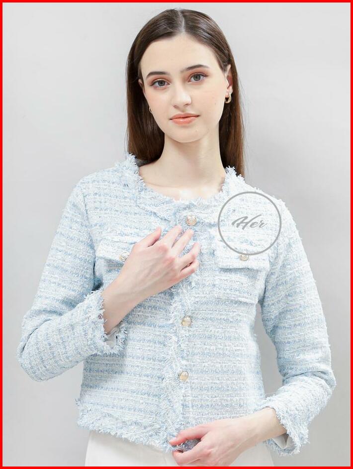 Her Trends Bl001 Blazer Tweed High Quality Panjang Wanita Atasan Jaket Baju Outer
