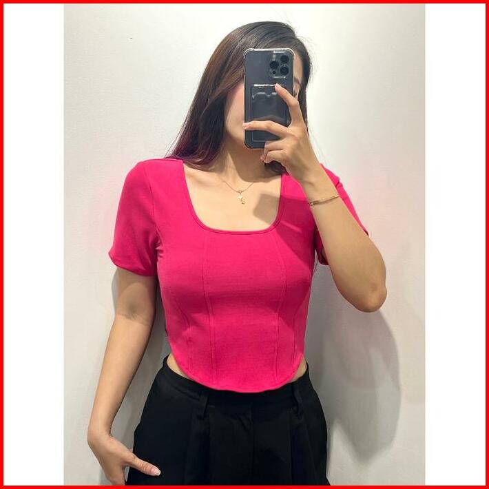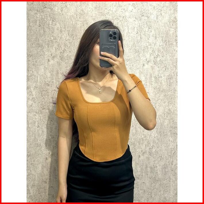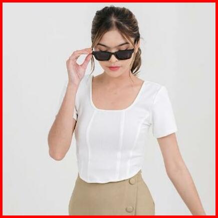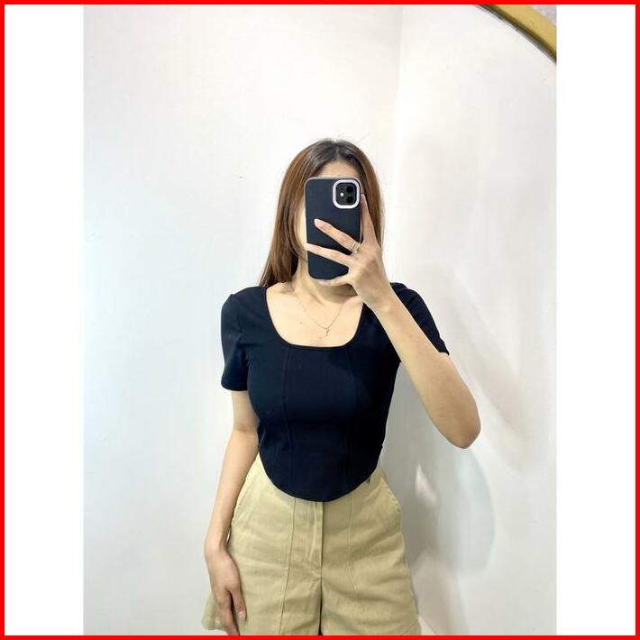 Evaluna Rib Knit Atasan Korset Wanita Lengan Pendek Paris- 1.0313 Rib Knit