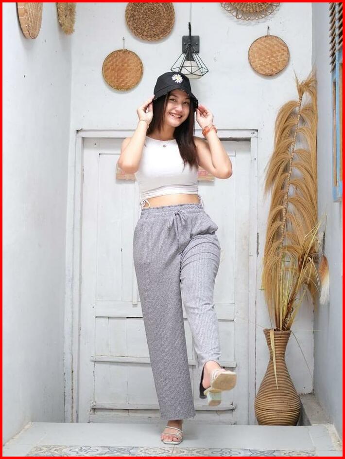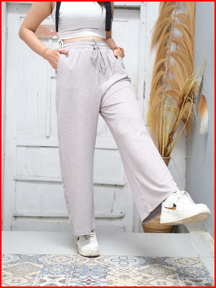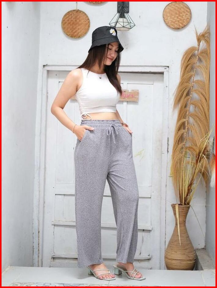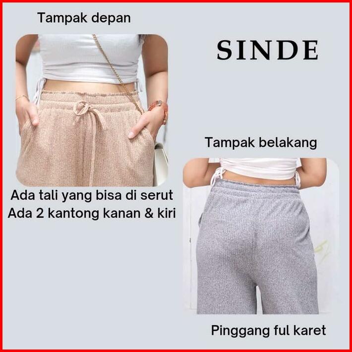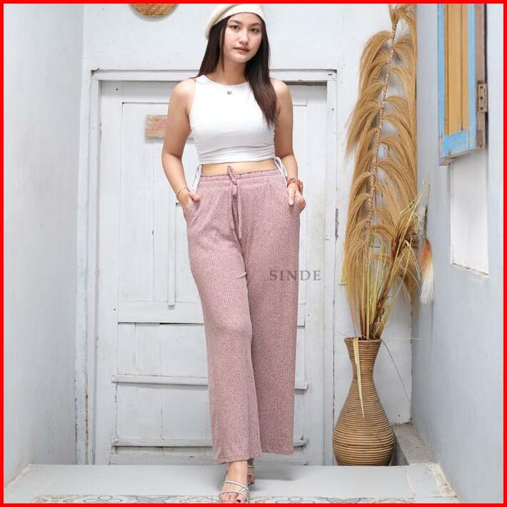 Sinde Kulot Alvia Hornet Knit Nyaman Stretch Wanita Celana Panjang Karet Pant Bawahan Casual