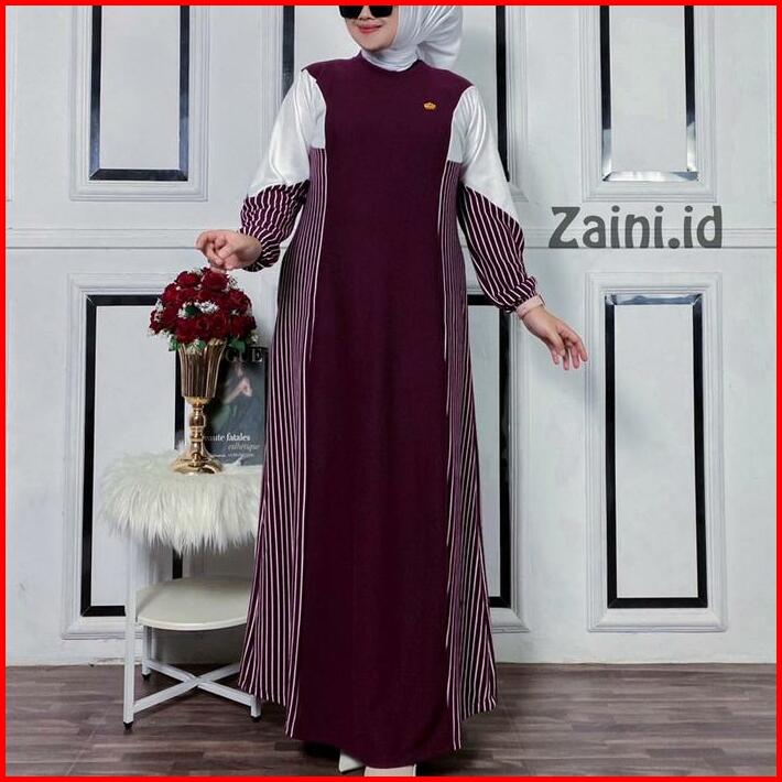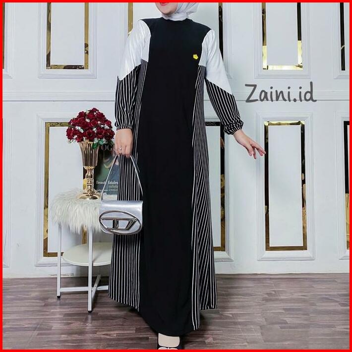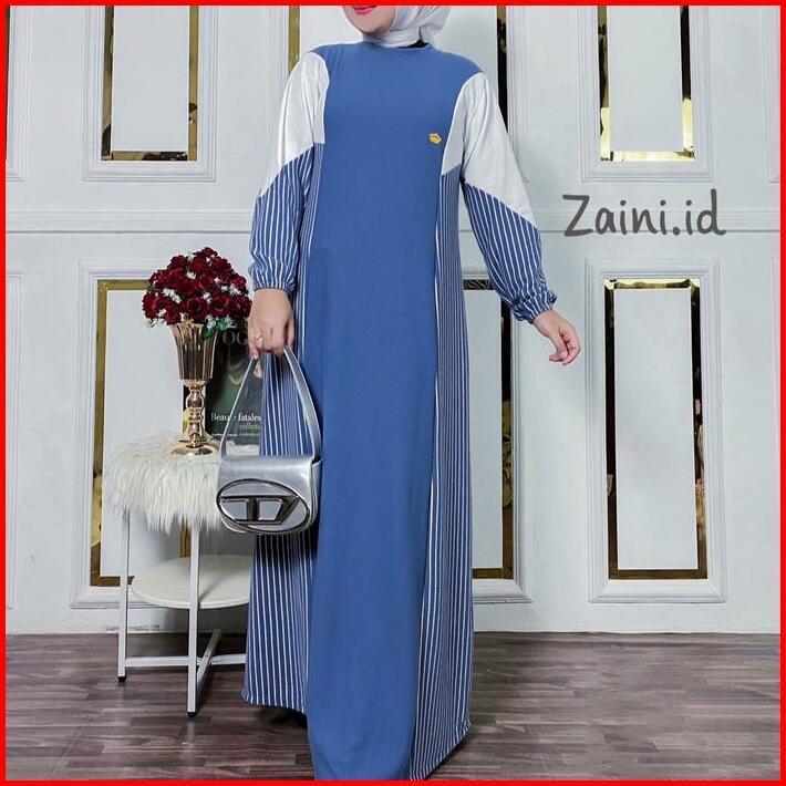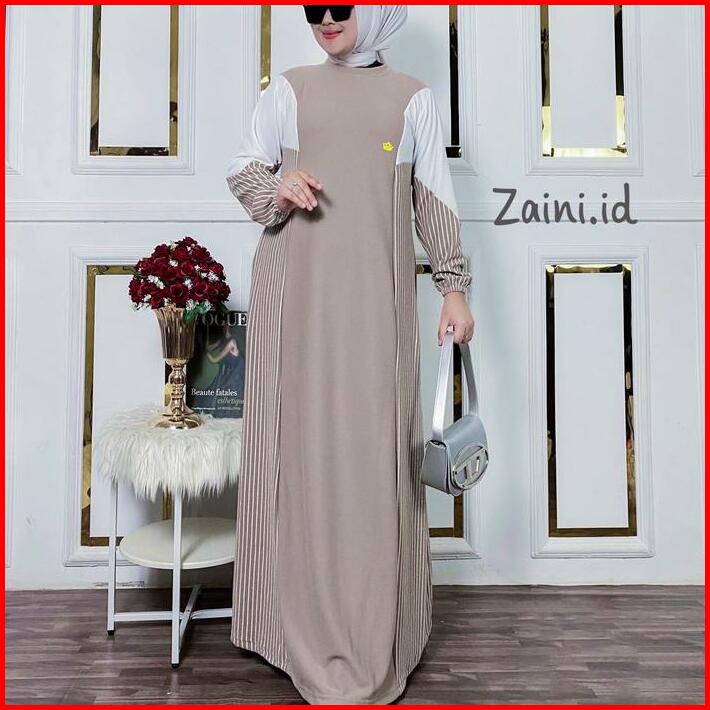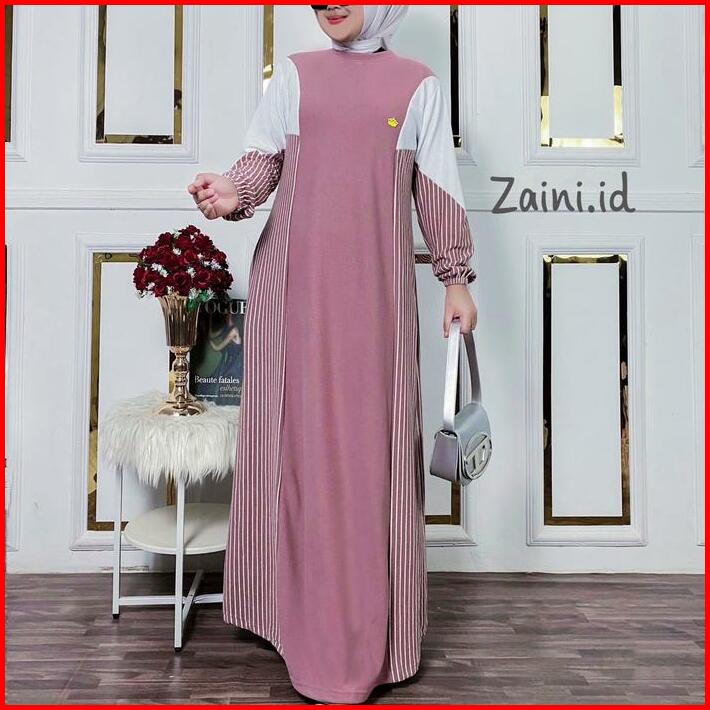 Dress Gamis Snowy Knit Salur Mix Polos Tangan Karet Model Terbaru Wanita