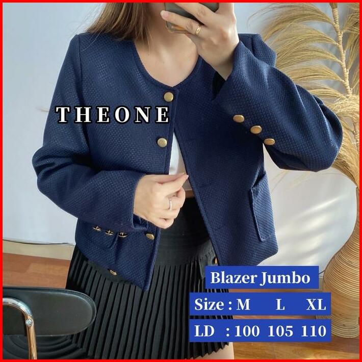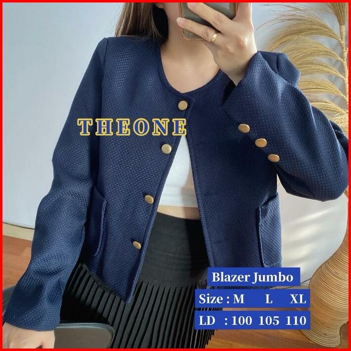 The0ne Bigsize Blazer Tweed Dark Navy Full Furing M-l-xl Blazer Jumbo Tweed Biru Dongker