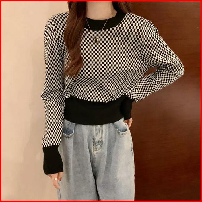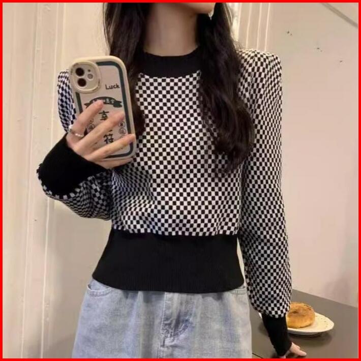 Missoofficial.id Bj1665 Baju Atasan Wanita Sweater Kaos Lengan Panjang Korea Rajut Long Sleve Knit Fashion Motif Nyaman