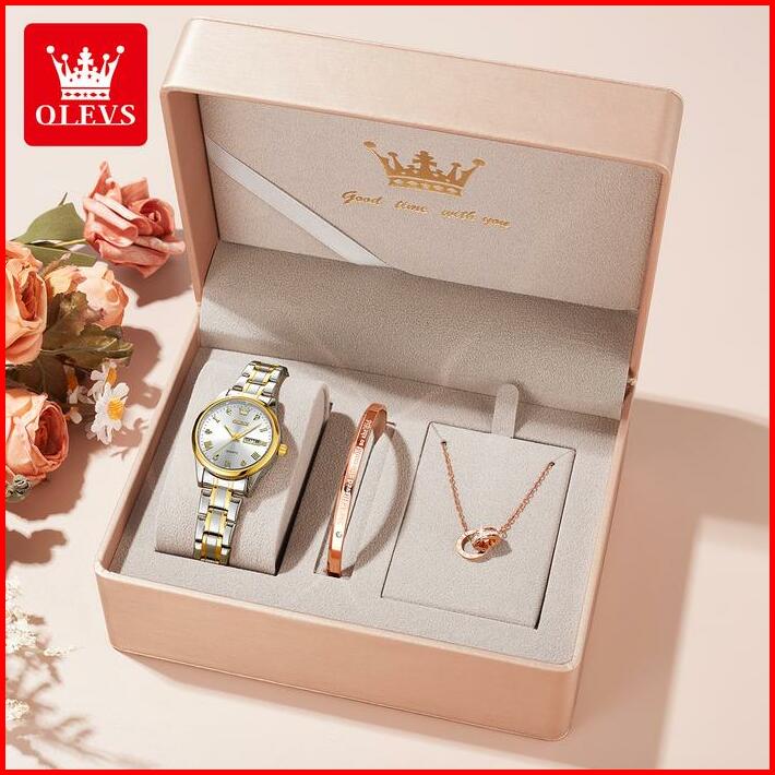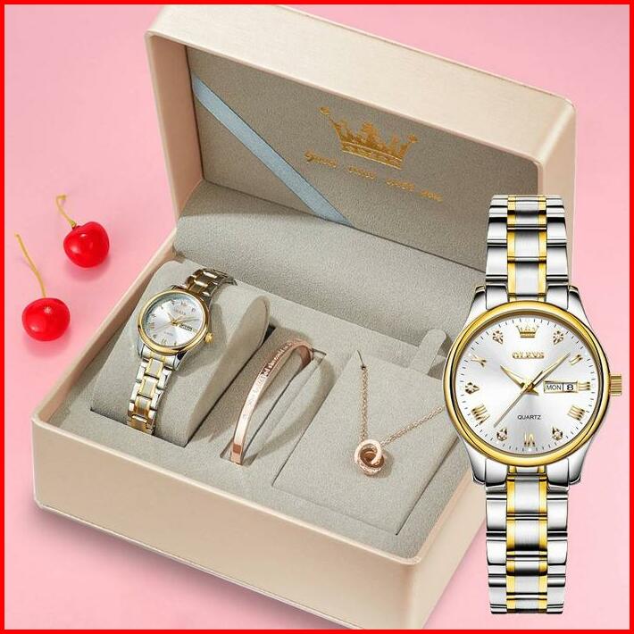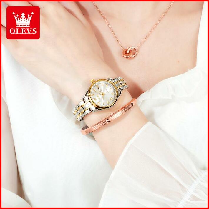 Olevs Jam Tangan Wanita Original Anti Air Terbaru 2023 Set Kotak Tahan Kecil Branded Elegan Analog Women Watch Arloji Hi