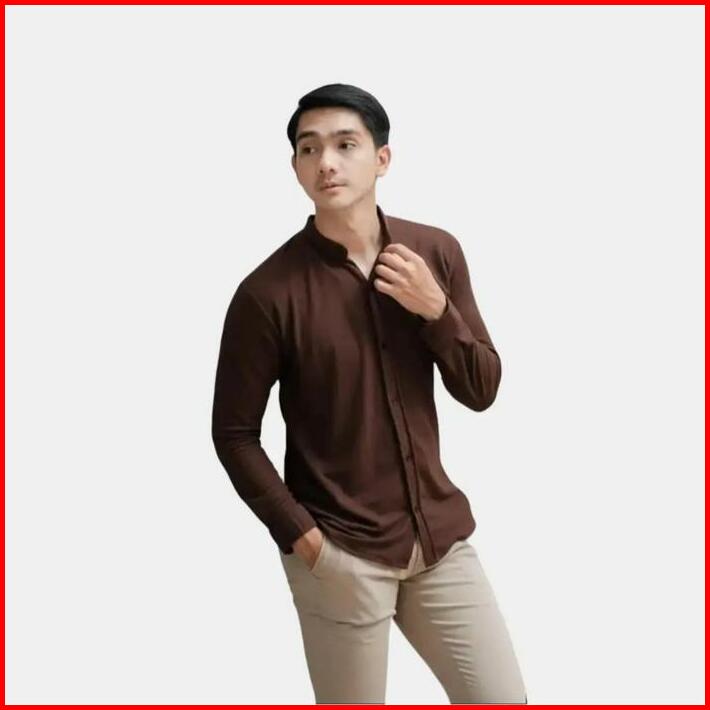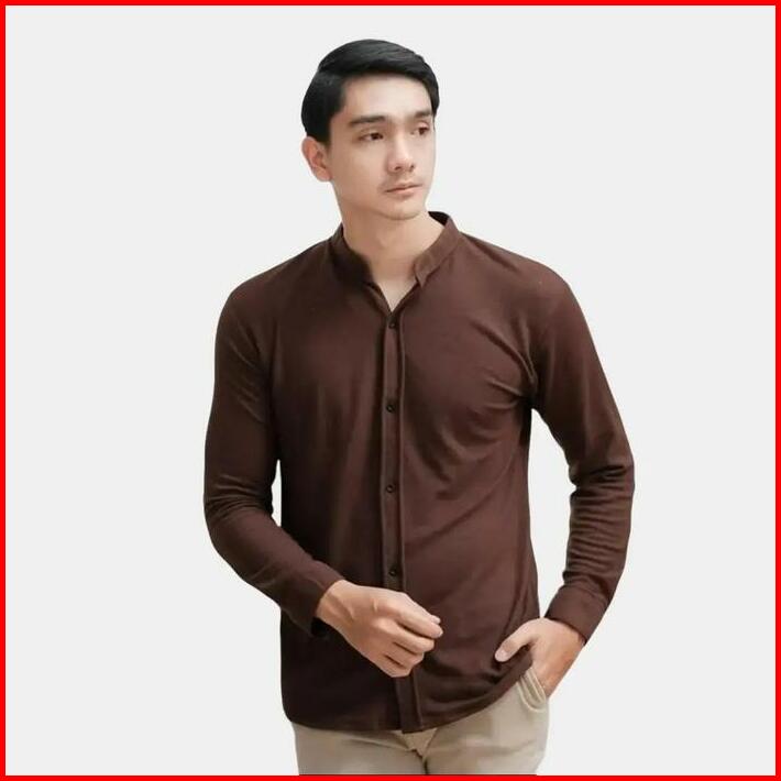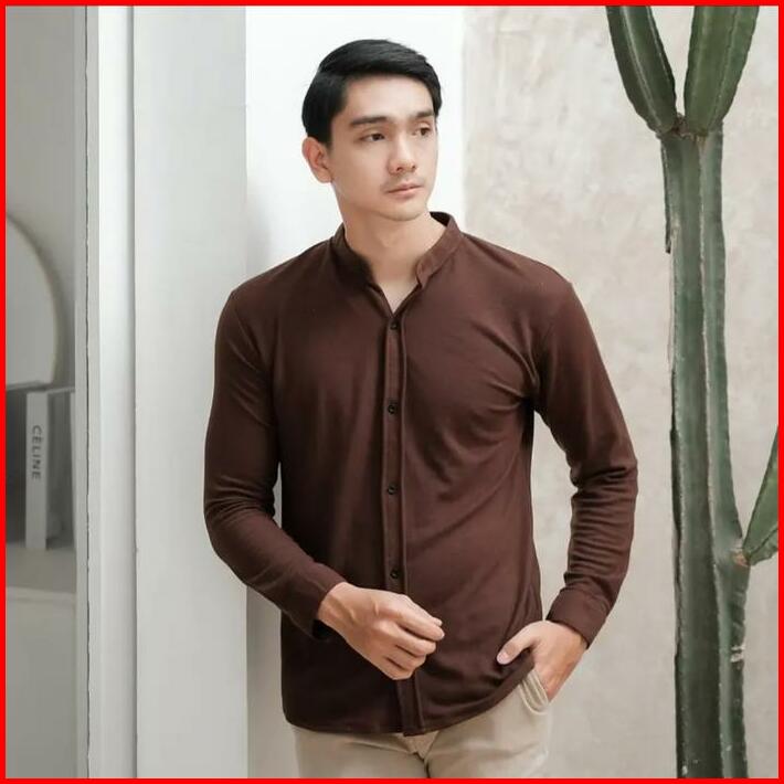 Must Kemeja Shanghai Pria Lengan Panjang Basic Polos Semi Formal Kantor Casual Slimfit Brown