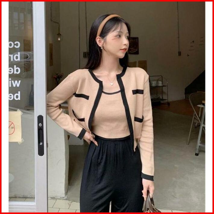 Toply Shop Setelan Cardigan Rajut Premium Set Moza Korea Style Setelena Cardigan Dalaman