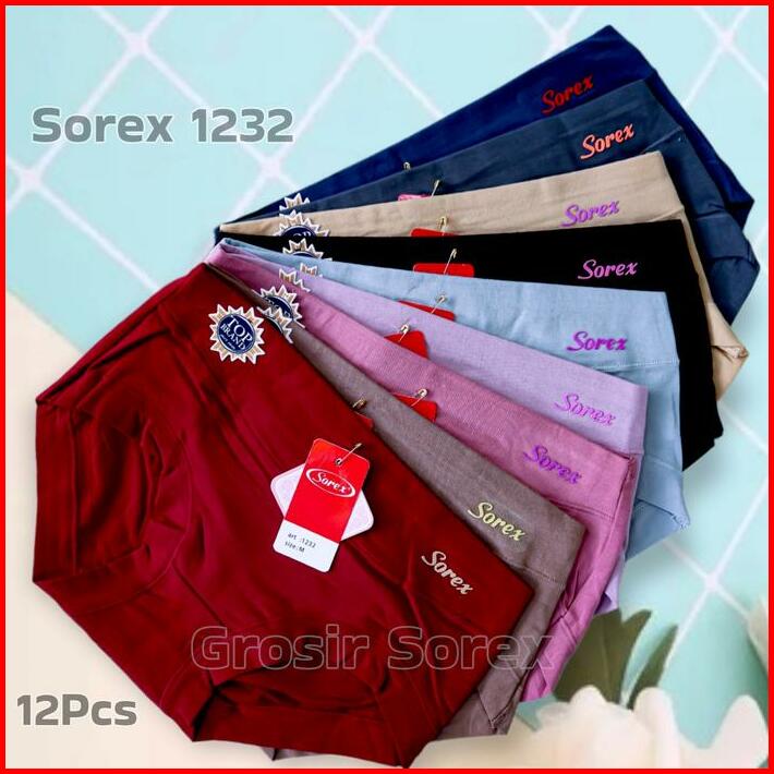 Paket 12 6 3 Sorex 1232 Celana Dalam Wanita Cewek Remaja Dewasa Bahan Katun Meresap Keringat Karet Pendek Semi Boxer Pre