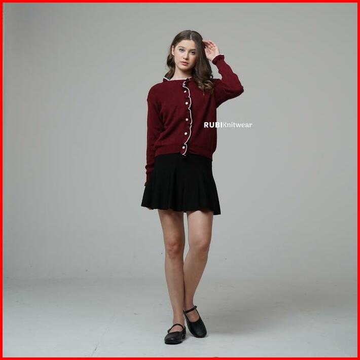 Rubi Anya Kardigan Knitwear Wanita Baju Atasan Cardigan Basic Panjang Outer Oversize Cewek Kancing Dewasa Top Rib Hitam