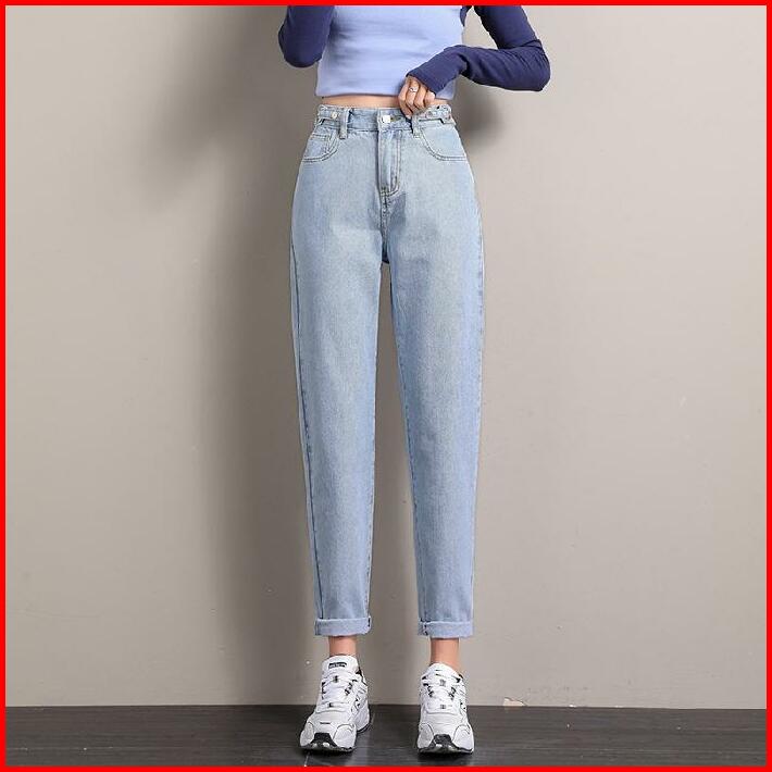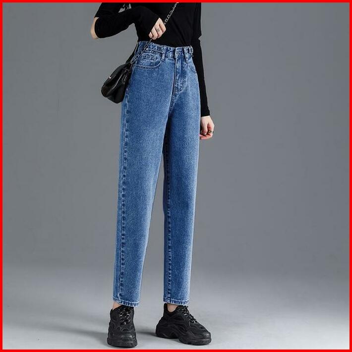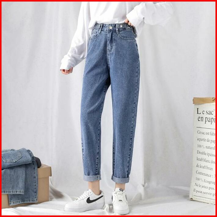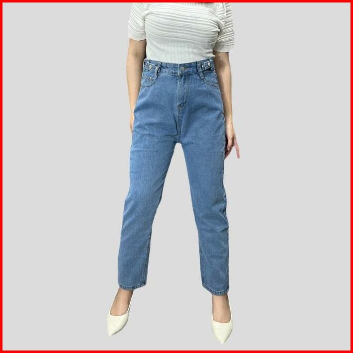 Jeansnjune Celana Jeans Wanita Boyfriend High Waist Jeans Premium Korean Style Panjang Fit Kaki Nyaman Slim Biru Denim M