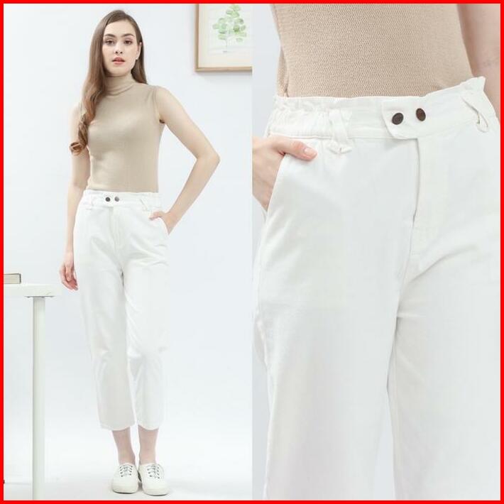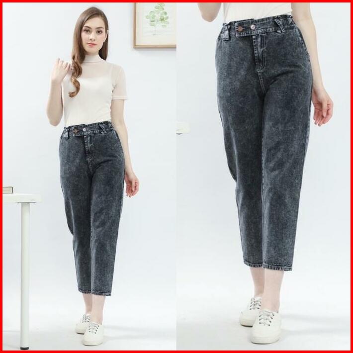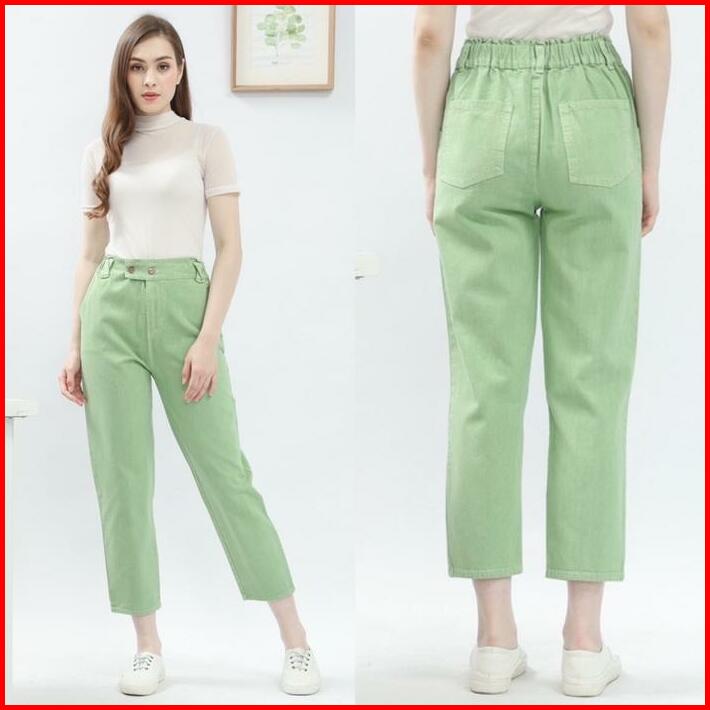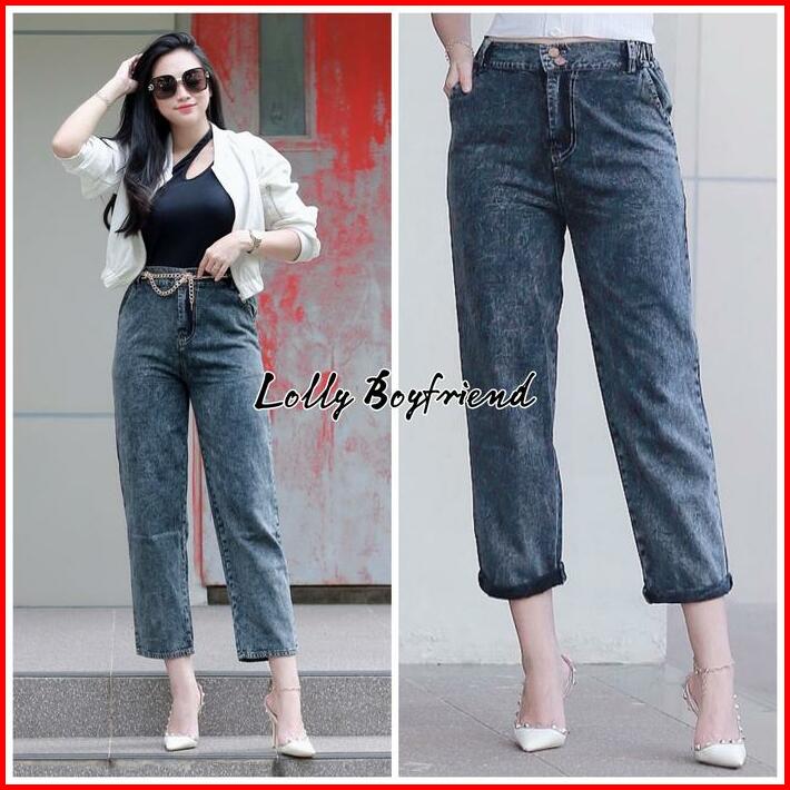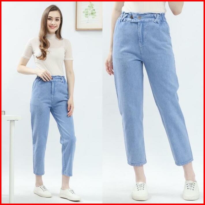 Poppy Korean Boyfriend Jeans Polos Pinggang Karet Melar Panjang