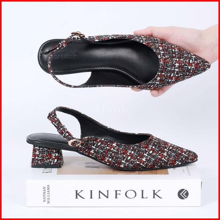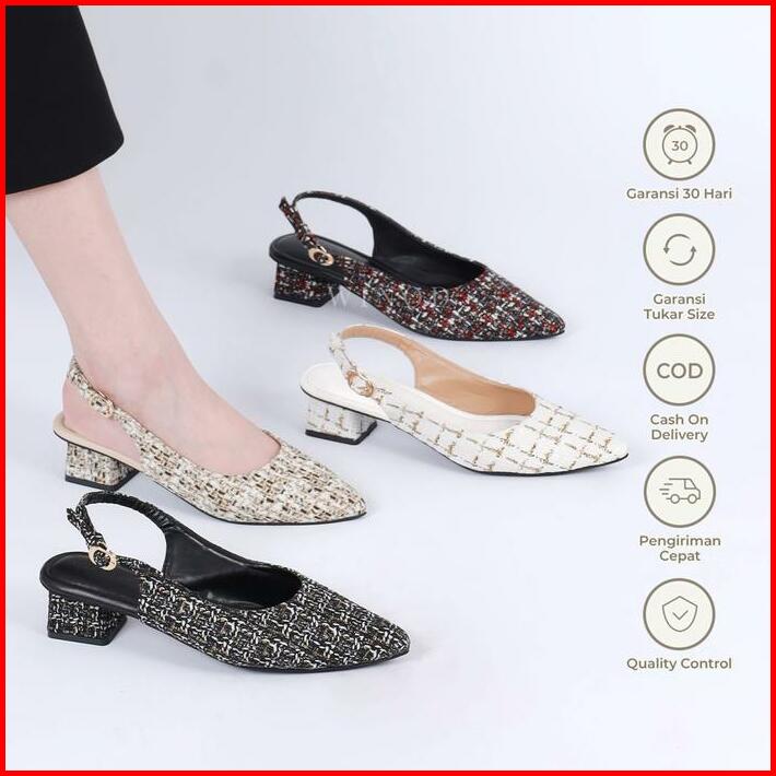 Winod Given Heels 3cm Sepatu Kantor Wanita Model Tweed Hak Tinggi Daily