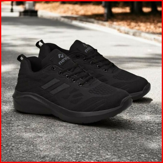 Nevis Sepatu Pria Jumbo Big Size 39-49 Hugo Sport Sneakers Casual Full Black Hitam Polos