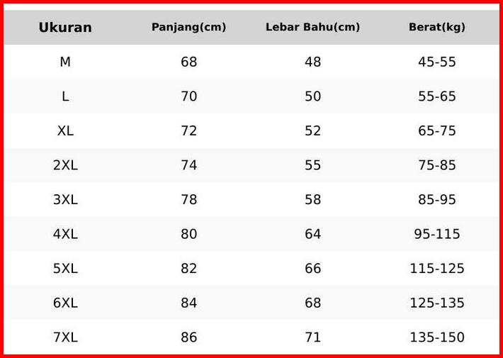 M, L, XL, 2XL, 3XL, 4XL, 5XL, 6XL, 7XL