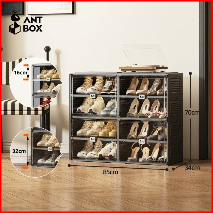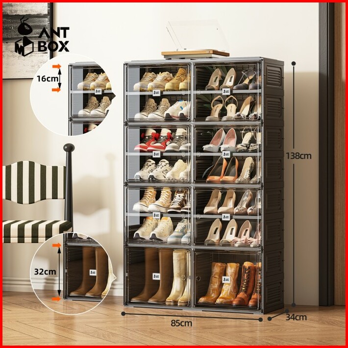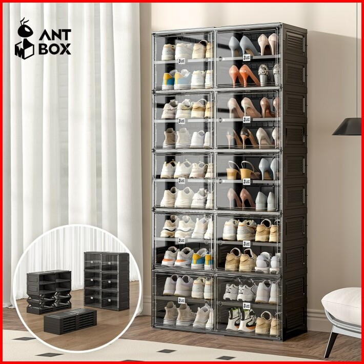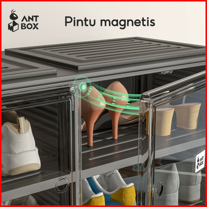 Antbox Rak Sepatu Lemari Sepatu Kabinet Susun Hitam 12-40 Pasang Aesthetic Minimalis Pintu Magnet Hitam