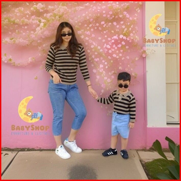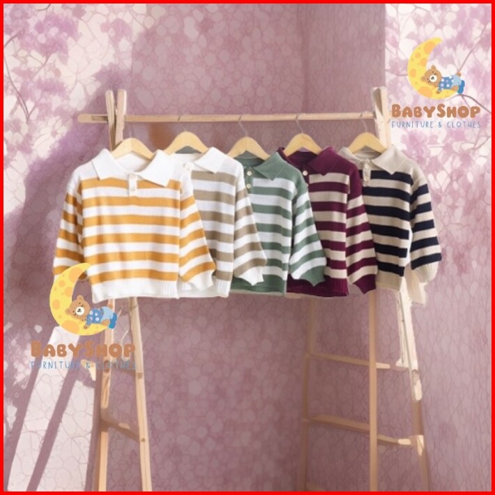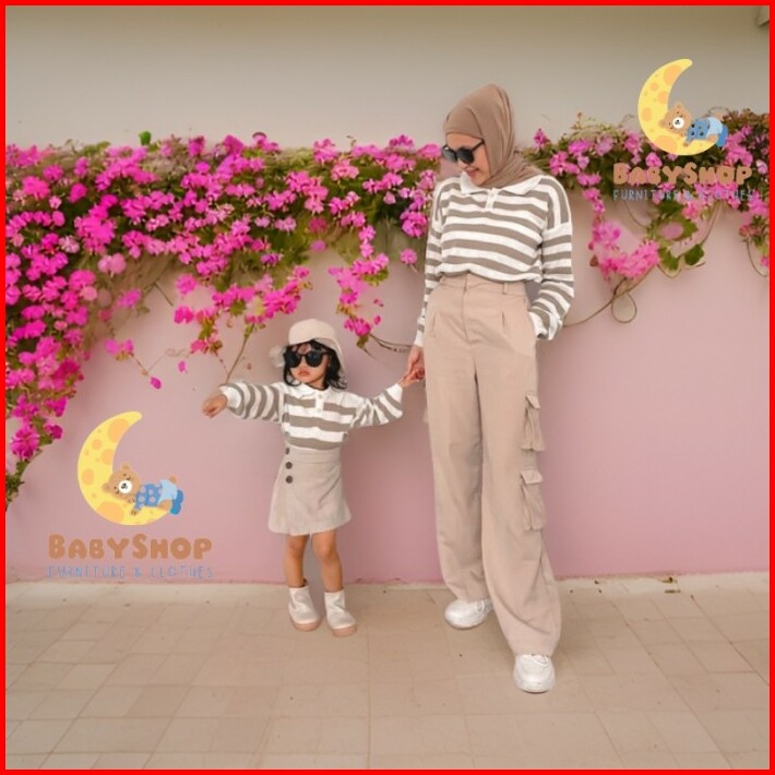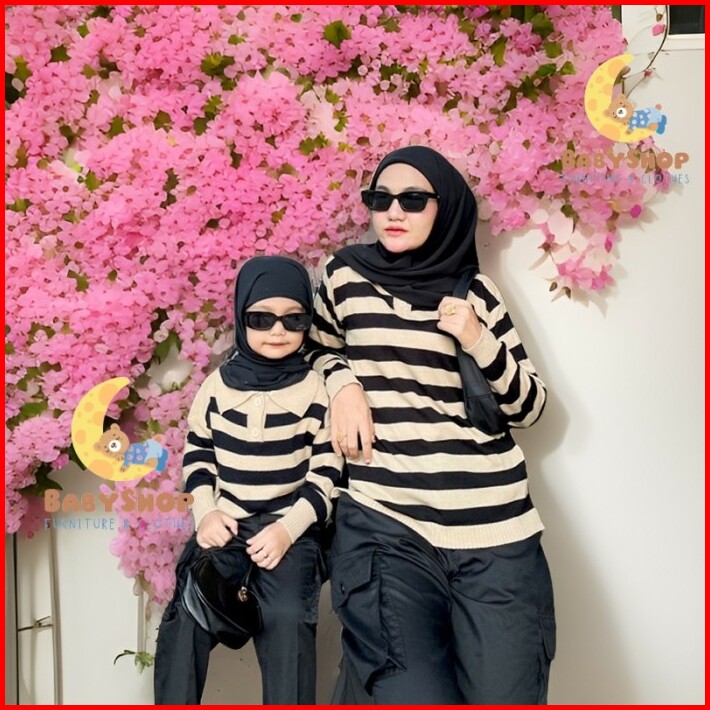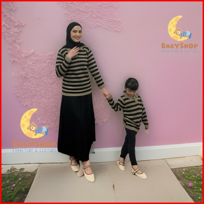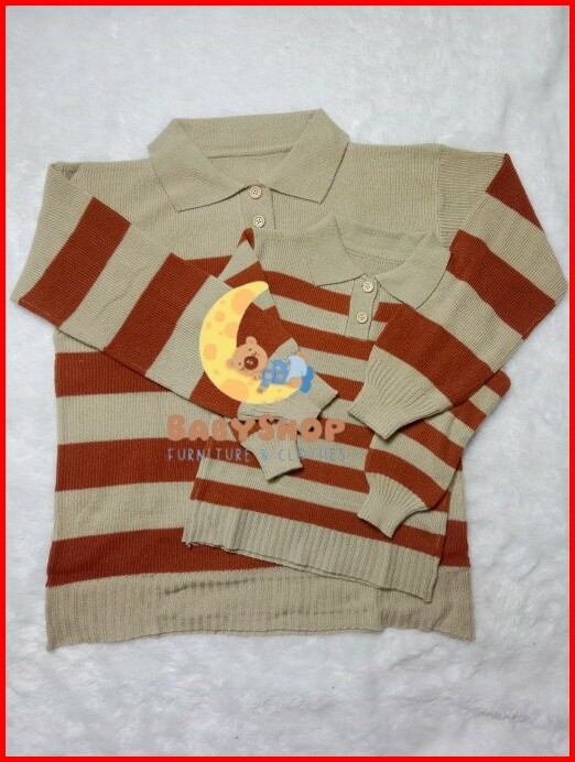 Baju Sweater Couple Keluarga Ibu Ayah Anak Switer Rajut Belang Stripe