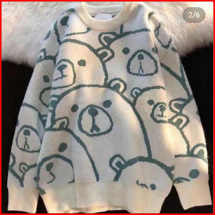 Sweater Rajut Motif Wanita Bears Oversize Premium Korea Style Terbaru
