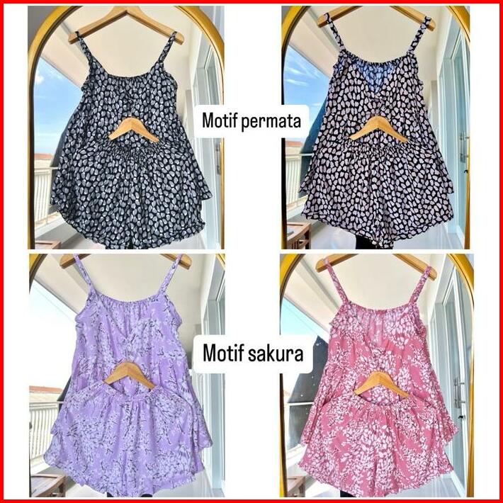 Paket Hemat Set Tanktop Pendek Jumbo Setelan Baju Atasan Celana Rayon Wanita Lembut Motif Panjang Dewasa
