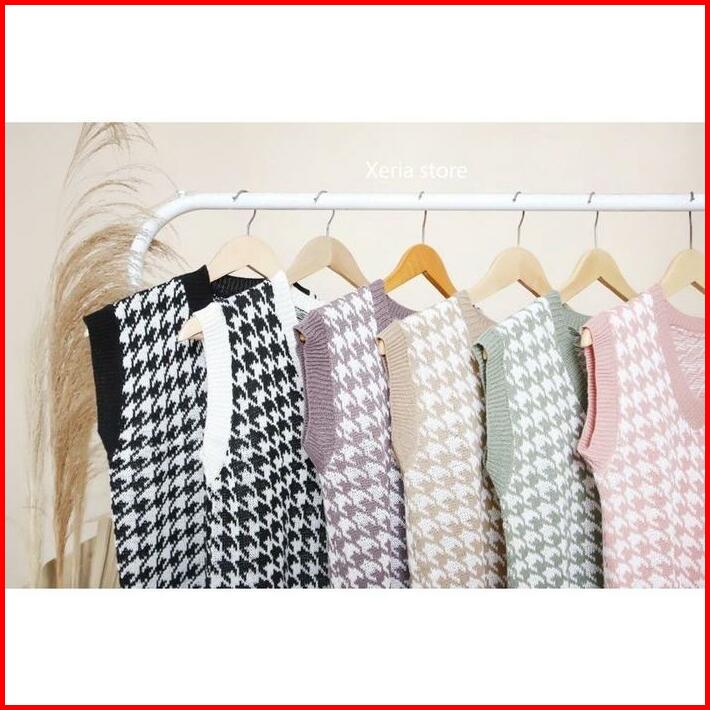 Jennie Vest Rajut Houndstooth Vest Rompi Rajut Korea Cardigan Rompi Korean Style