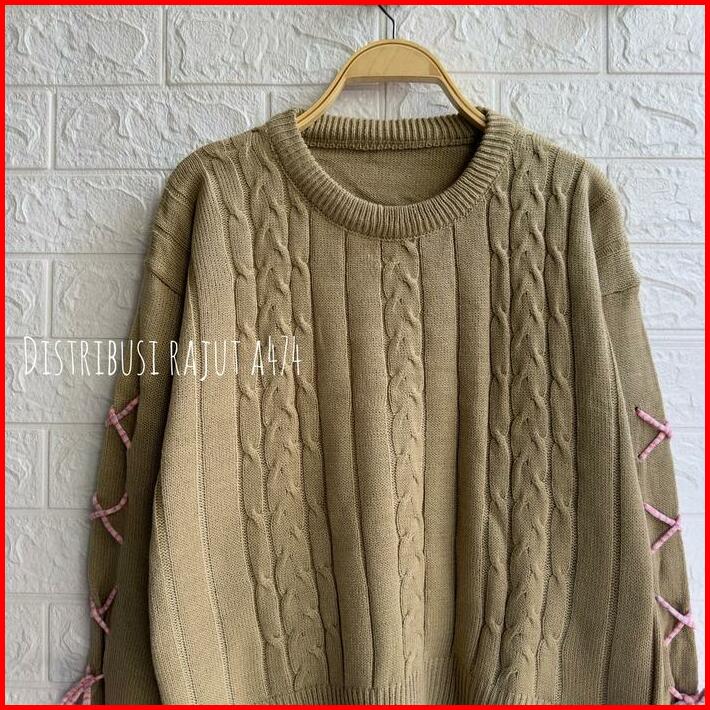 Monay Victoria Sweater Rajut Cable Strap Korea Baju Knitwear Tangan Panjang Cardigan Top