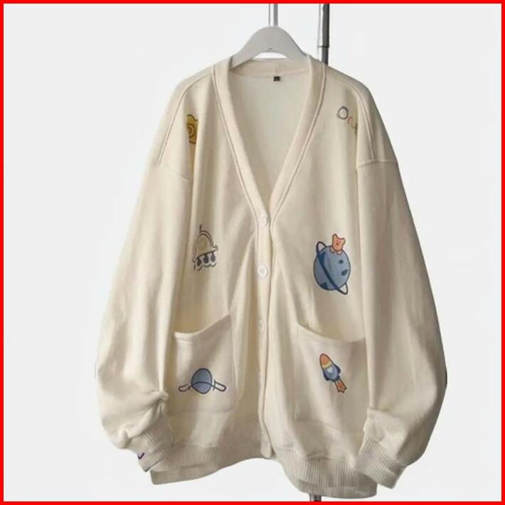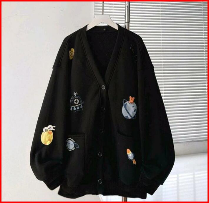 Star Cardigan Sweater Panjang Kancing Galxy Wanita Cantik Outer Korea Bahan Fleece