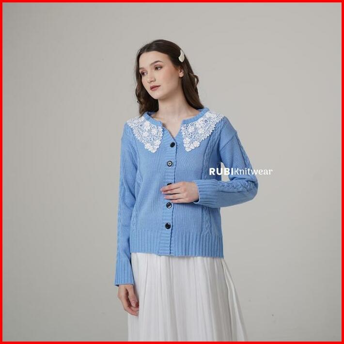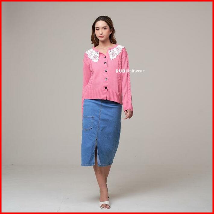 Rubi Nana Cardigan Rajut Kerah Korean Style Knitwear Wanita Panjang Atasan Outer Baju Kardigan Tebal Cewek Kancing Basic