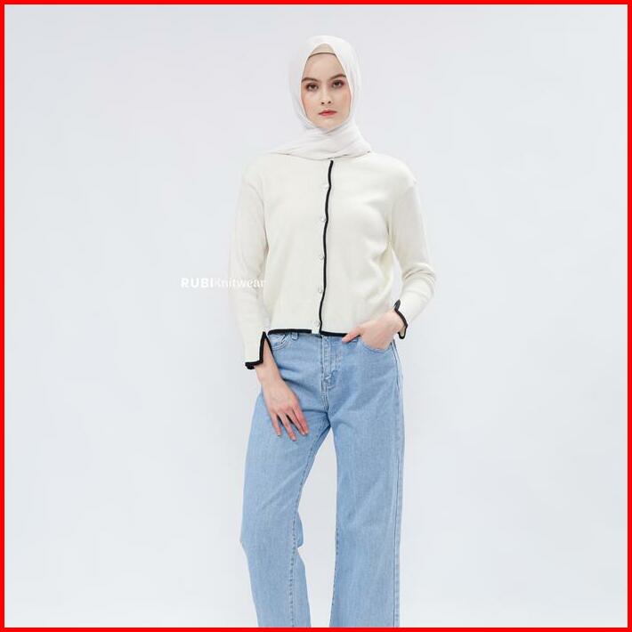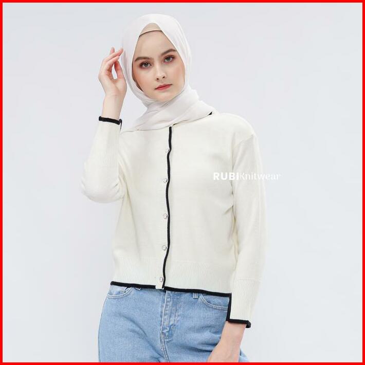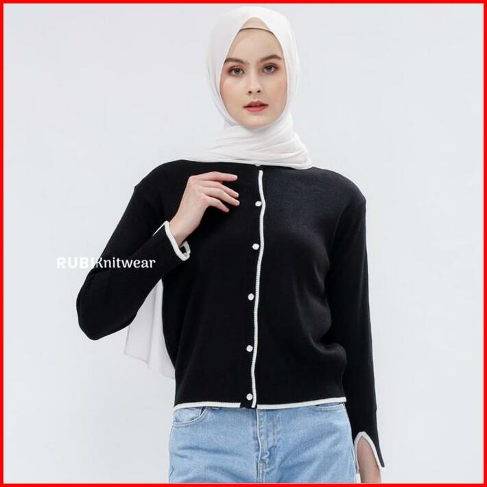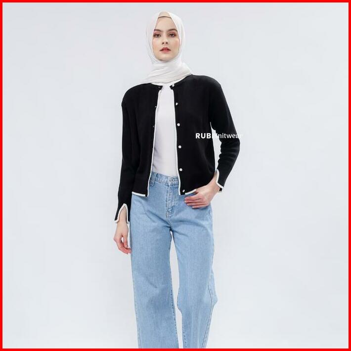 Rubi Keysa Cardigan Knitwear Outer Wanita Panjang Hitam Atasan Kardigan Baju Casual Cewek Basic Top Dewasa Tebal Rib Cro