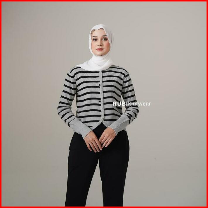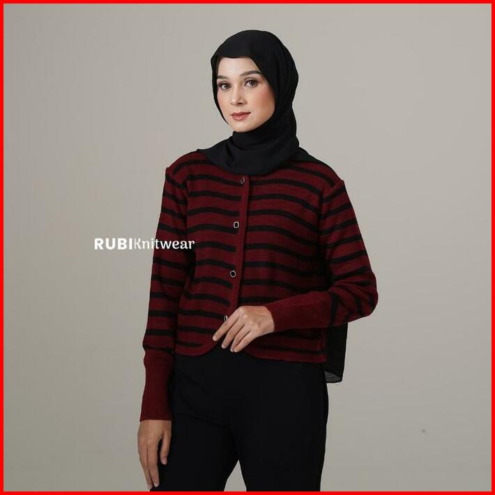 Rubi Adel Cardigan Knitwear Wanita Hitam Panjang Kardigan Outer Atasan Baju Cewek Basic Oversize Casual Sweater Top Crew