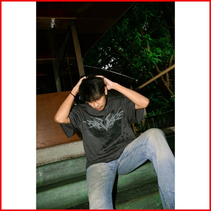 Readyy Accentambios Kaos Boxy Fit Oversized Tshirt Savage Abu Tua Katun Santai Combed Printing Streetwear