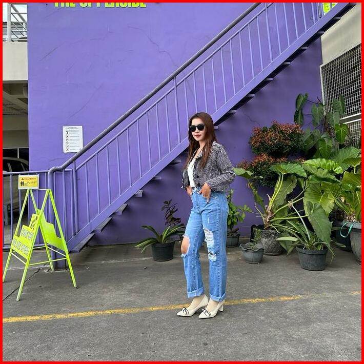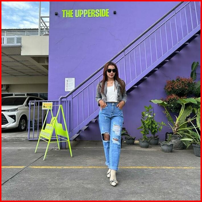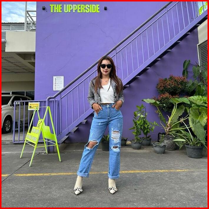 Celana Jeans Boyfriend Wanita Bf Lalissa Size 28-34 Premium Denim High Panjang Waist Loose Fit Boyfriend Jeans Light Teb