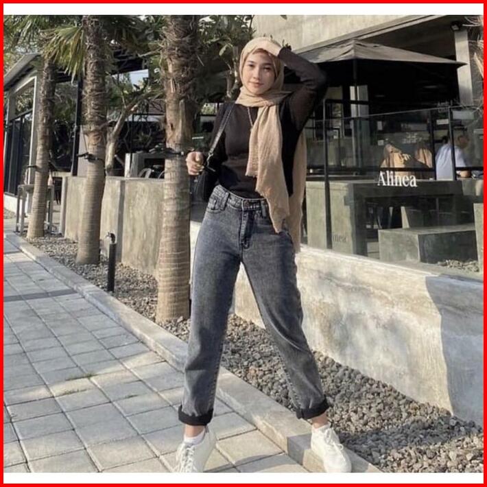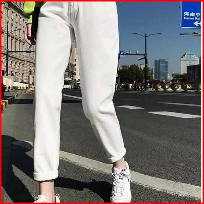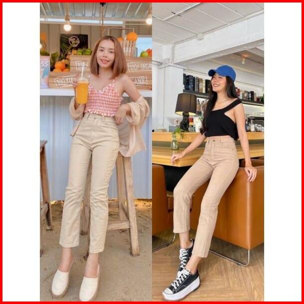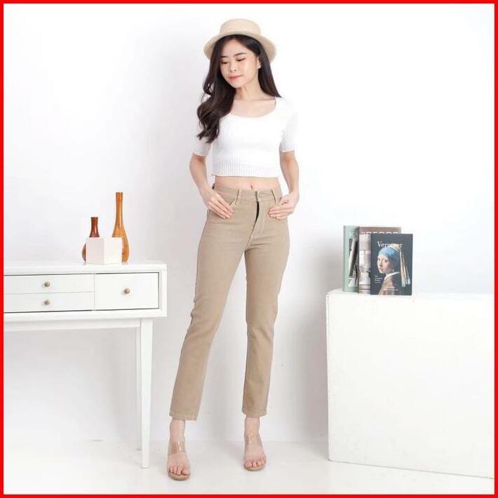 Celana Jeans Boyfriend Polos Khaki Panjang Wanita